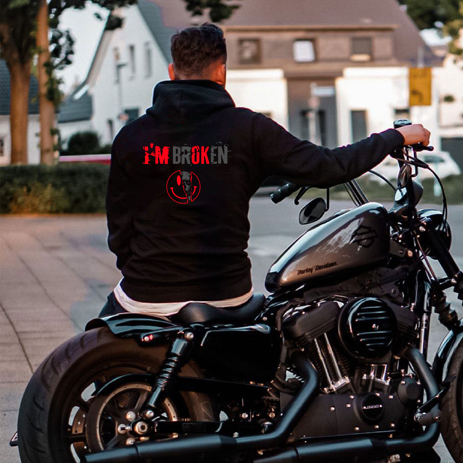 I'M BROKEN Smiling Face Graphic Casual Black Print Hoodie