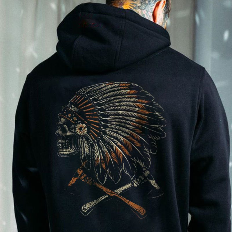 Indian Skull Graphic Black Print Hoodie