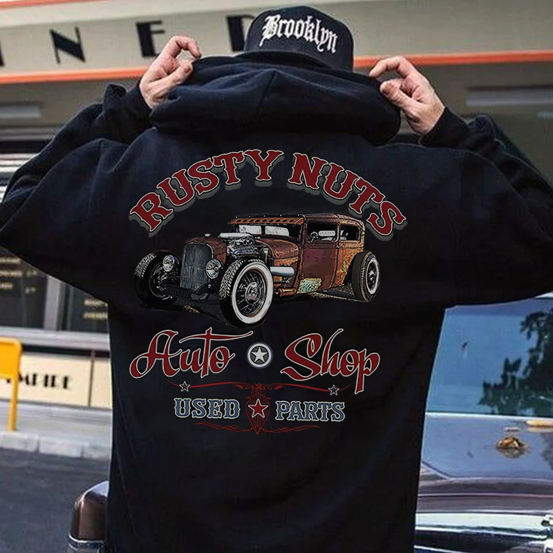 RUSTY NUTS AUTO SHOP Classic Car Print Men's Hoodie