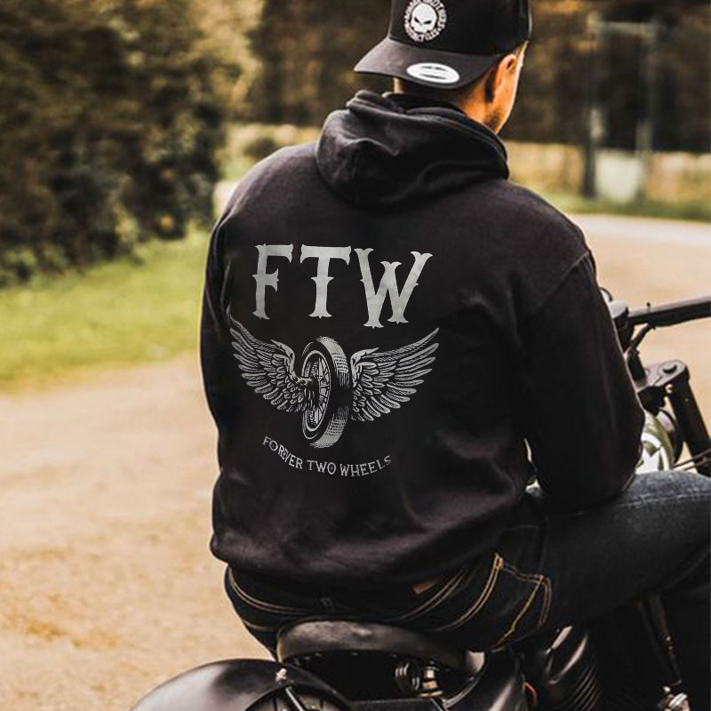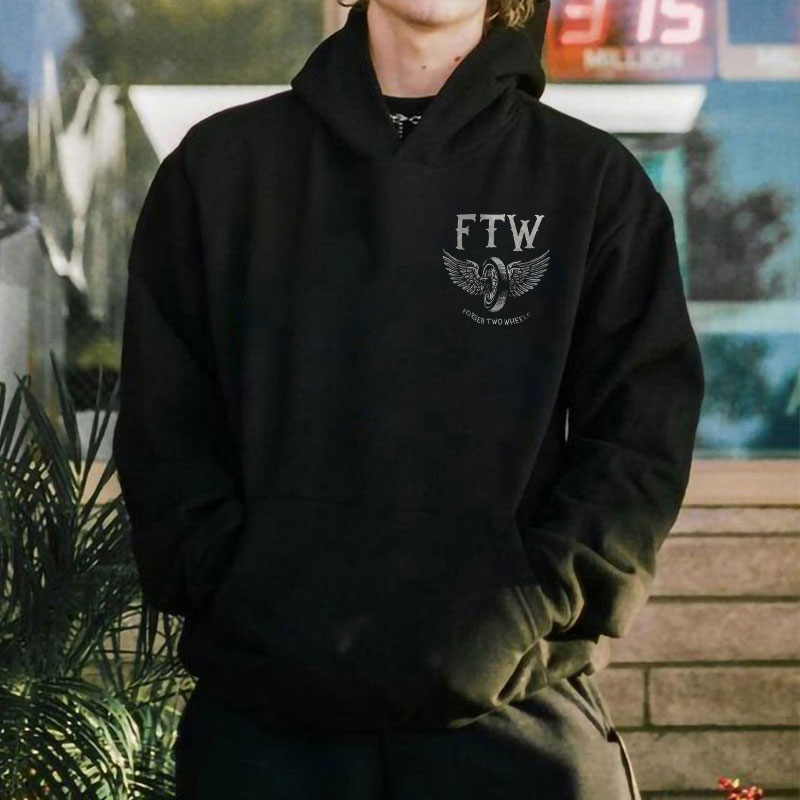FTW Wheel with Wings FOREVER TWO WHEELS Black Print Hoodie