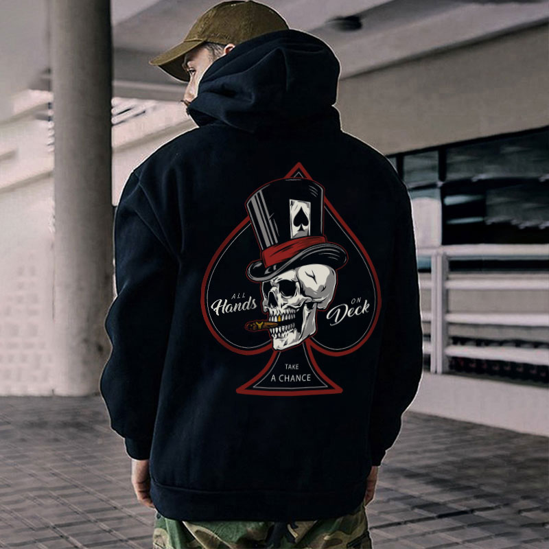 ALL HANDS ON DECK Gentle Skull with Poker Hat Graphic Black Print Hoodie
