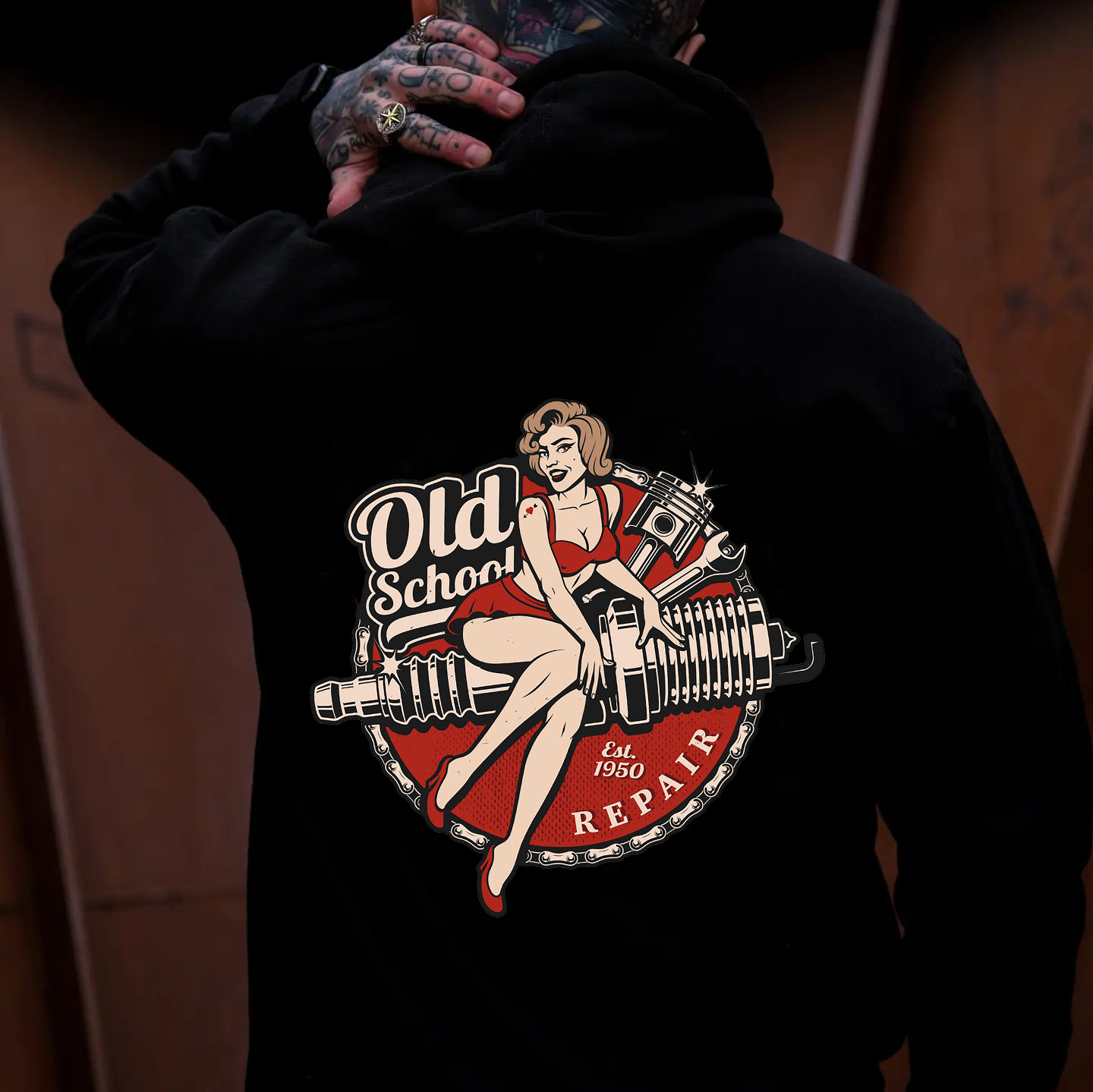 OLD SCHOOL Motorcycle Lady Print Men's Hoodie