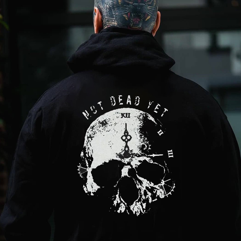NOT DEAD YET Live Clock Casual Graphic Black Print Hoodie