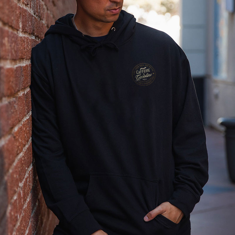 CAFFEINE & GASOLINE Letter Graphic Casual Black Print Hoodie