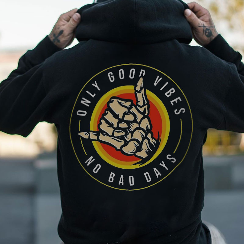 ONLY GOOD VIBES NO BAD DAYS Black Print Hoodie