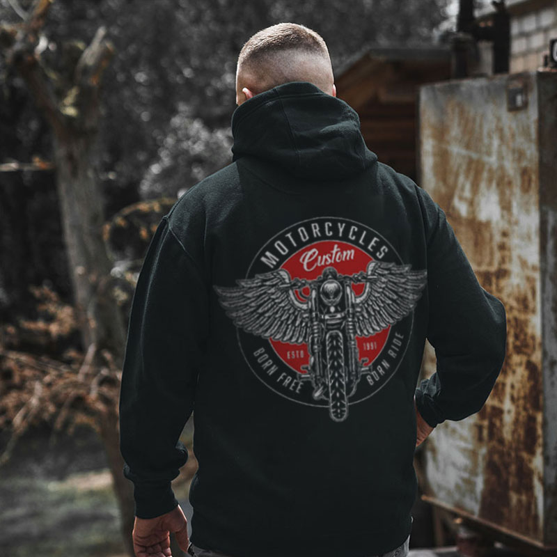 MOTORCYCLES BORN FREE BORN RIDE Graphic Black Print Hoodie