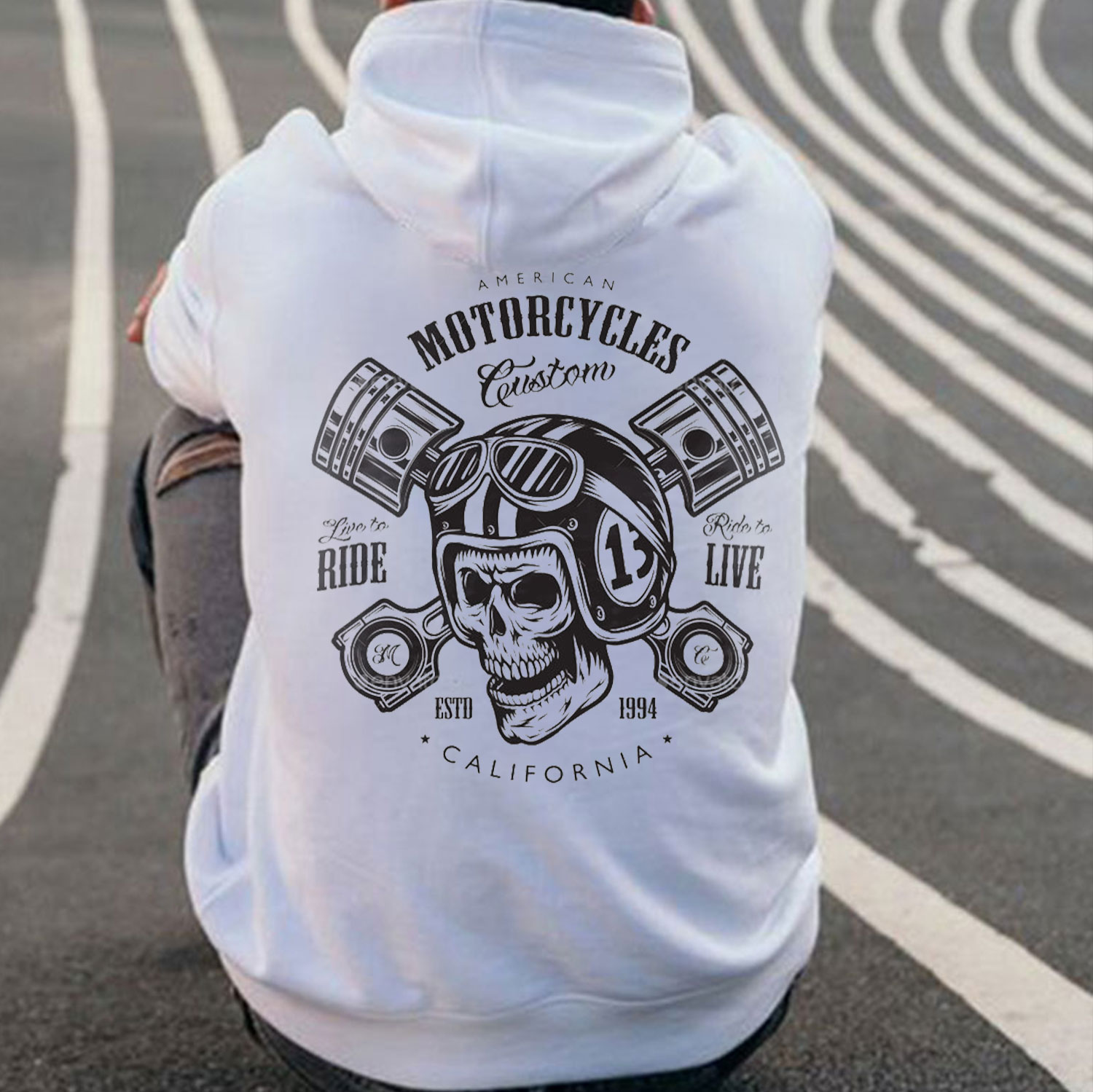 Modern Motorcycles Ride to Live White and Black Print Hoodie