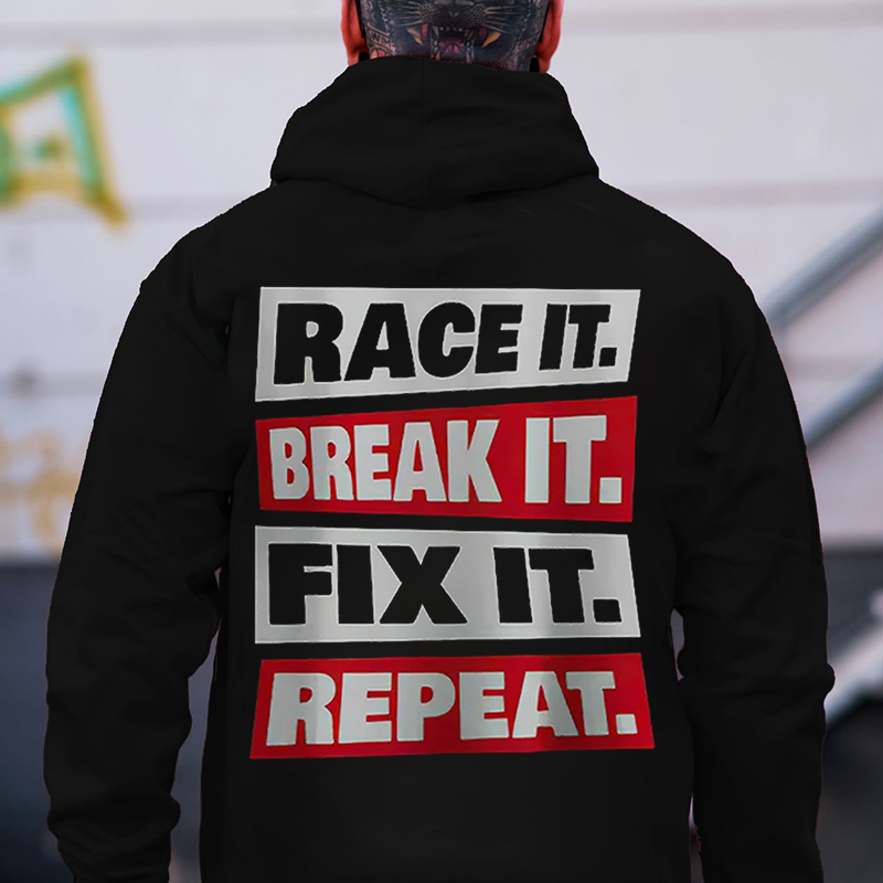 RACE IT BREAK IT FIX IT REPEAT Print Men's Hoodie
