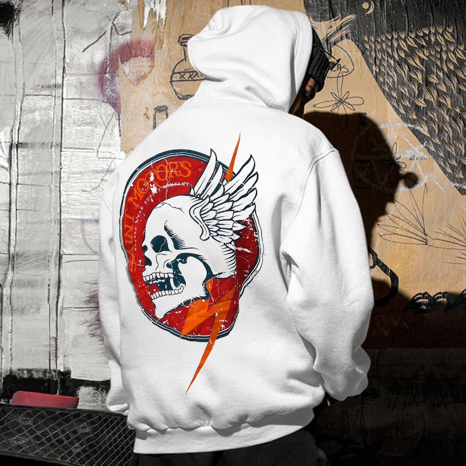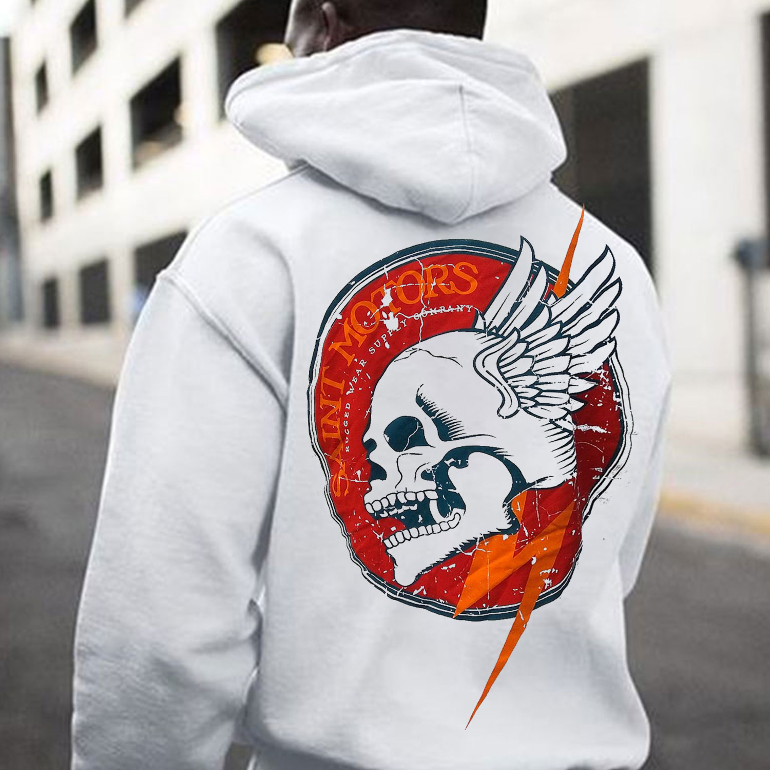 SAINT MOTORS Lightning Skull Wings Graphic White Print Hoodie