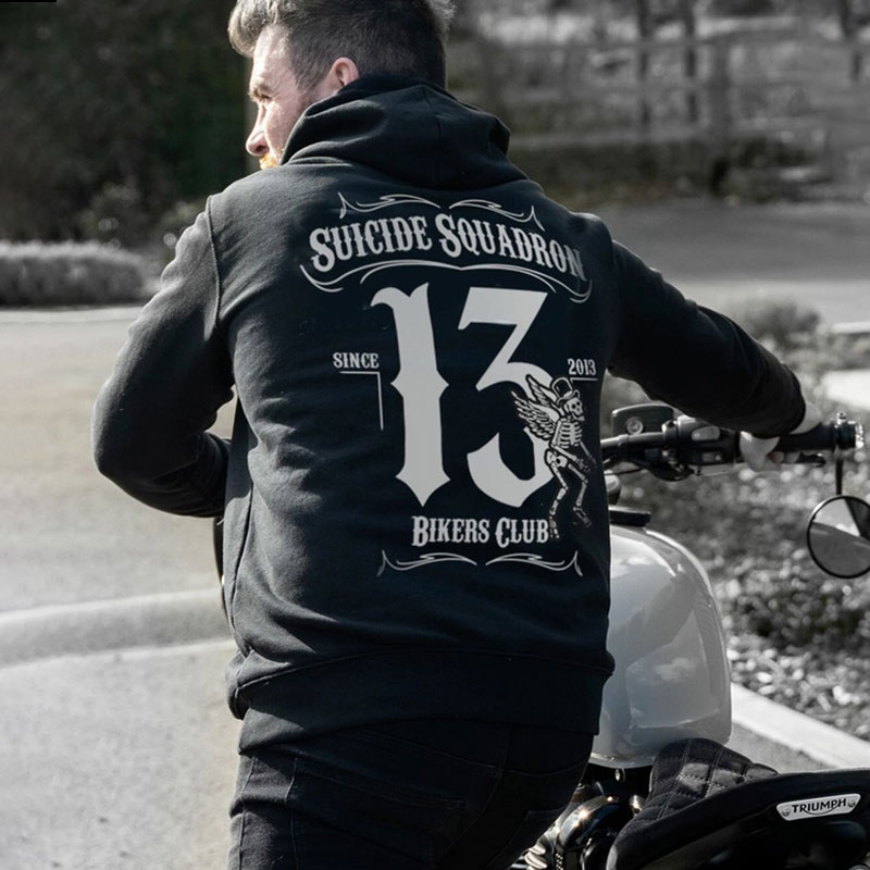 NEVER DIE LUCKY THIRTEEN Skull Graphic Black Print Hoodie