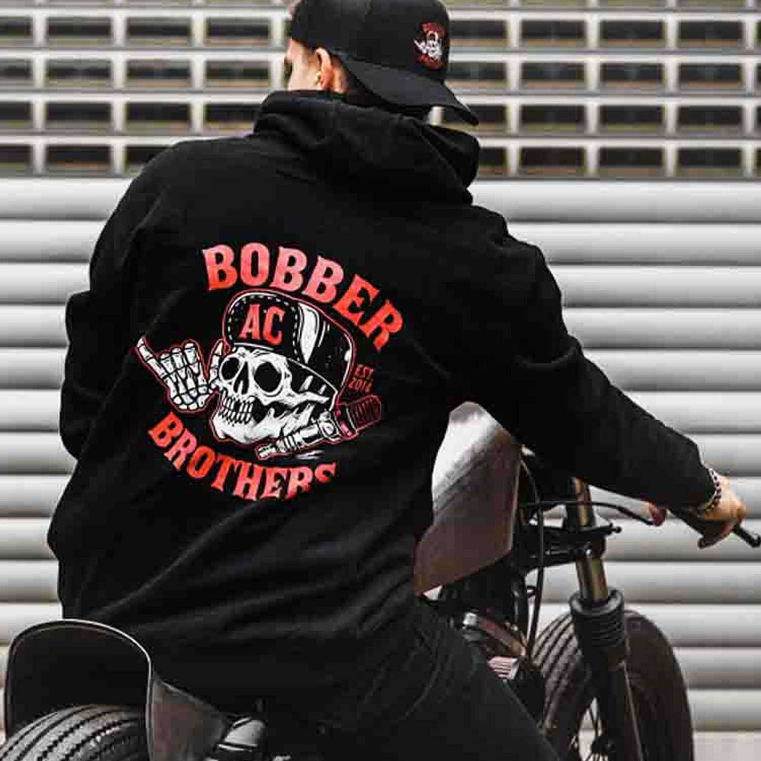 BOBBER BROTHERS Skull with Helmet Graphic Black Print Hoodie