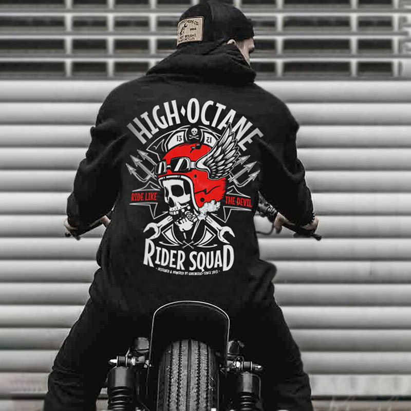HIGH OCTANE Skull with Helmet Black Print Hoodie