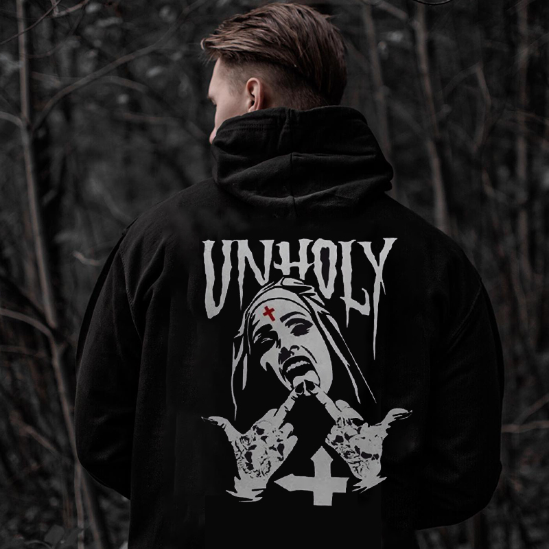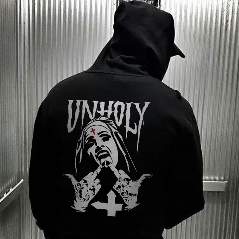 UNHOLY Nun Graphic Casual Black Print Hoodie