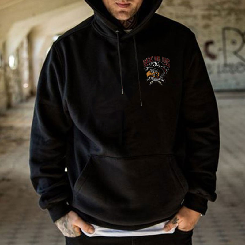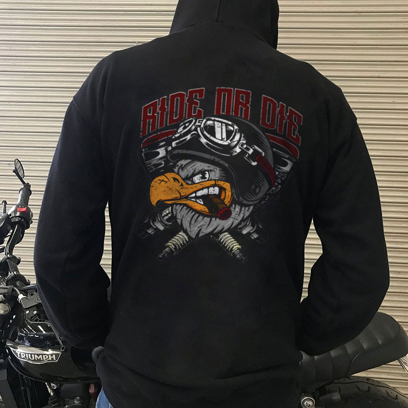 RIDE OR DIE Eagle with Helmet Graphic Black Print Hoodie