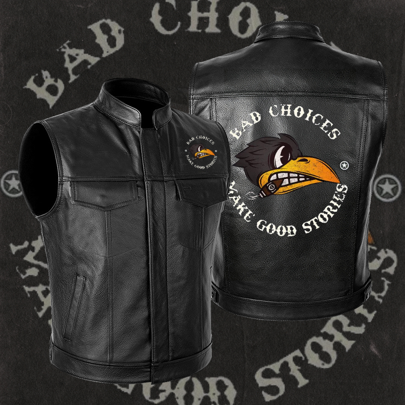 BAD CHOICES MAKE GOOD STORIES Smoking Crow Leather Motorcycle Vest