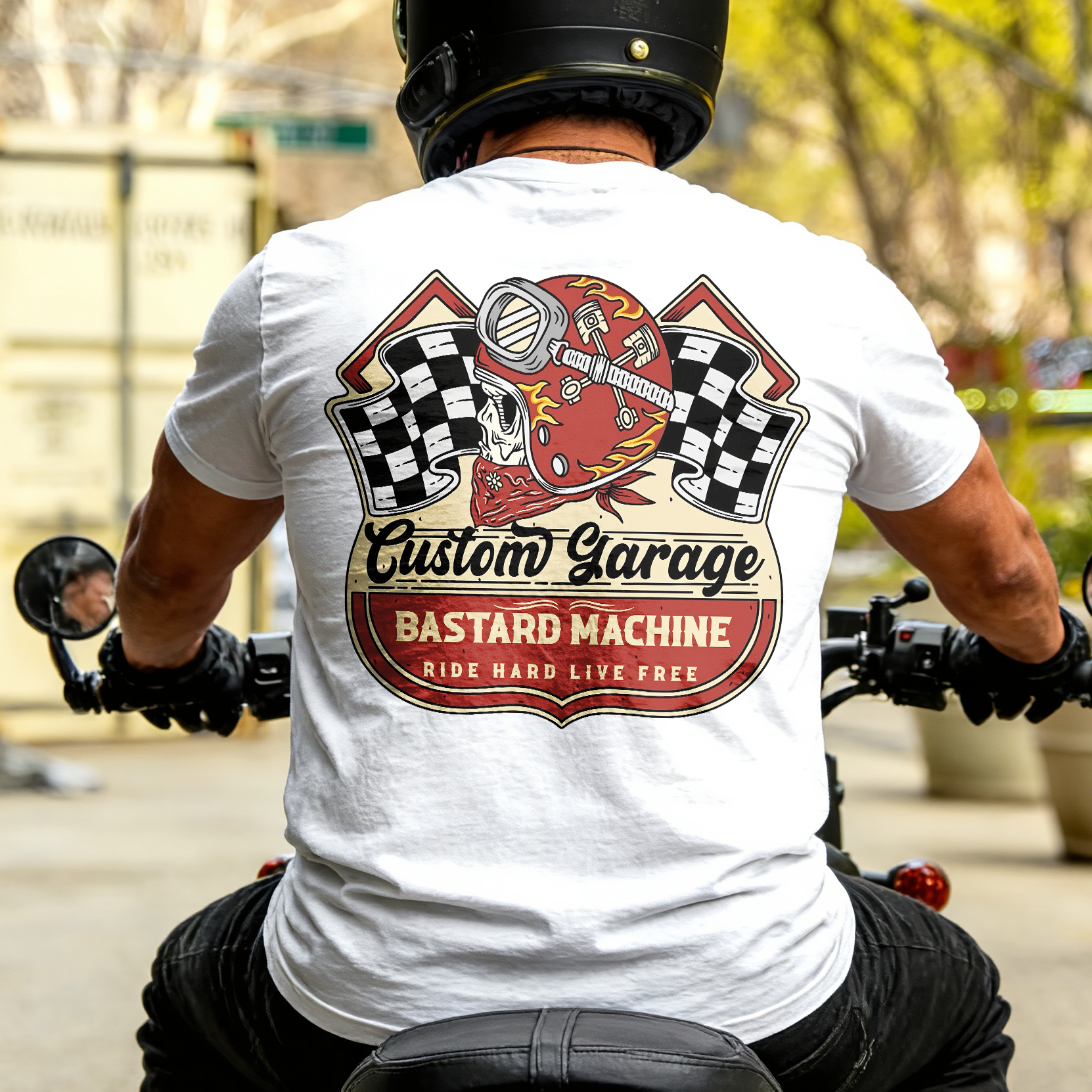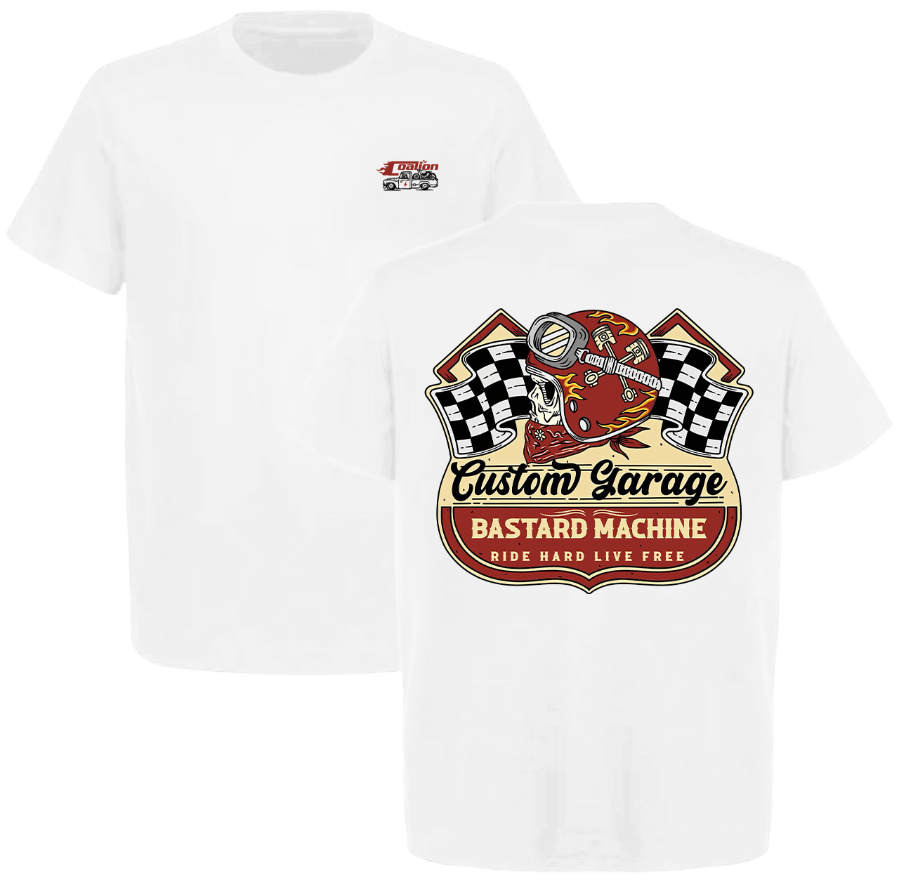 Custom Garage Bastard Machine Ride Hard Live Free Printed Men's T-shirt