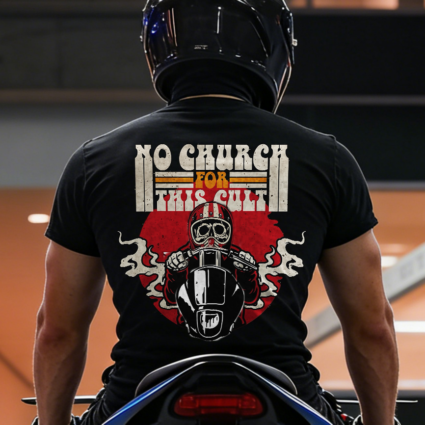No Church For This Cult Biker Printed Men's T-shirt
