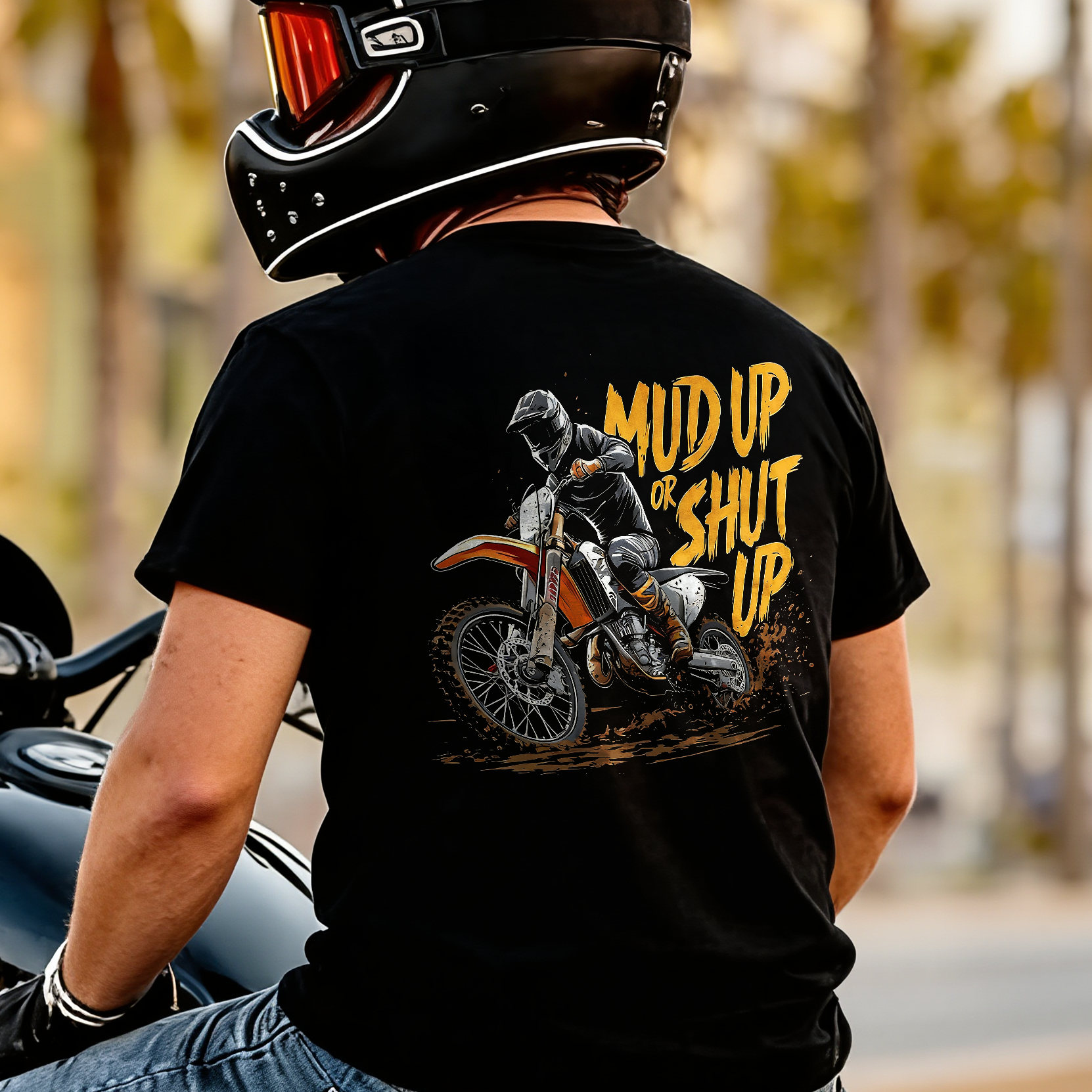 Mud Up Or Shut Up Motocross Rider Printed Men's T-shirt