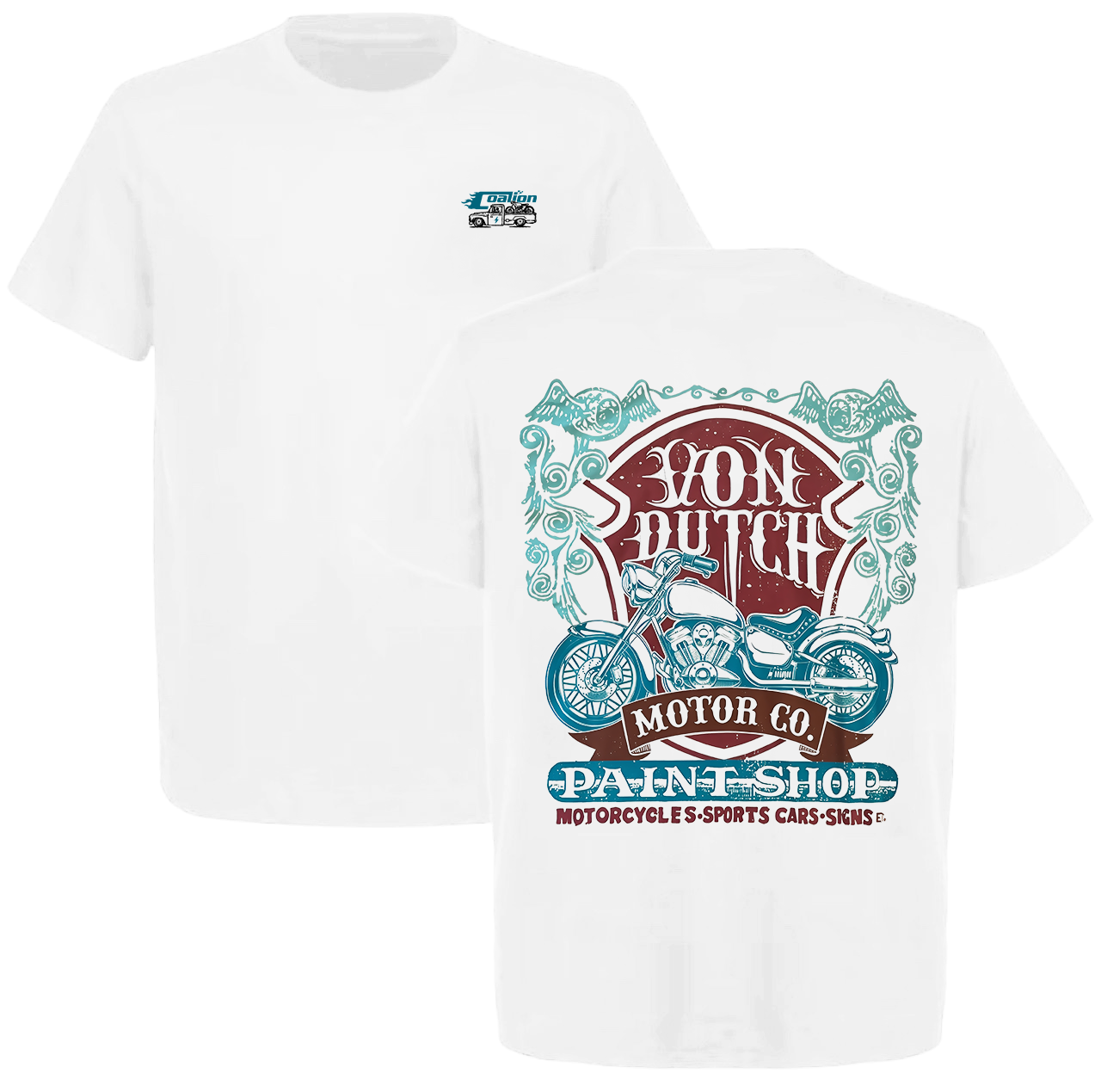 Von Dutch Motor Co. Paint Shop, Motorcycles-Sports Cars-Signs Printed Men's T-shirt