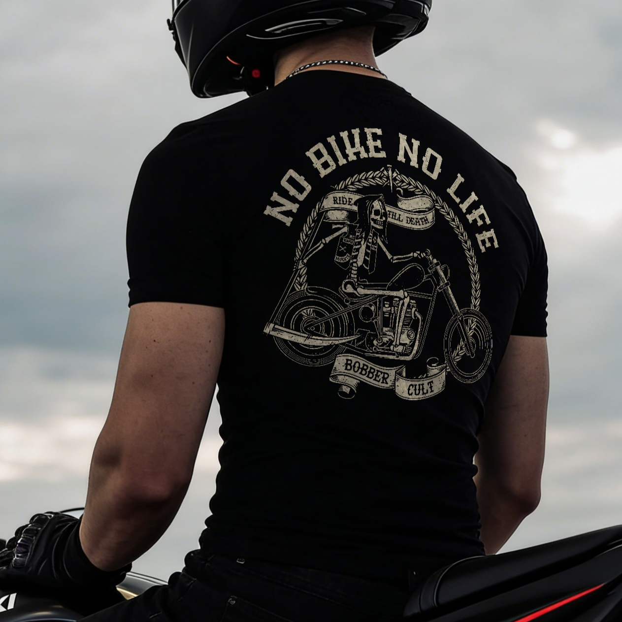 No Bike No Life, Ride Till Death Bobber Cult Printed Men's T-shirt