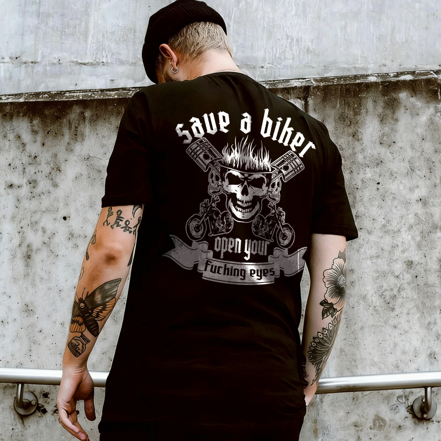 Save A Biker Open Your Fucking Eyes Printed Men's T-shirt