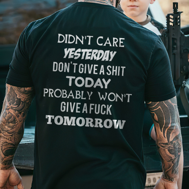 Didn't Care Yesterday Don't Give A Shit Today Printed Men's T-shirt