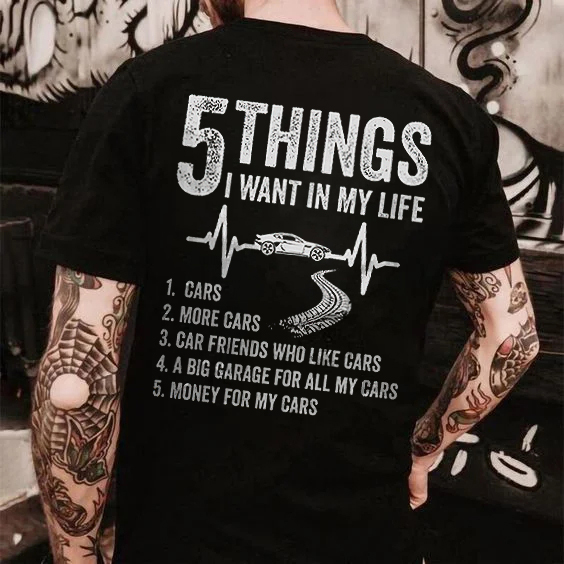 5 Things I Want In My Life Cars Themed Printed Men's T-shirt
