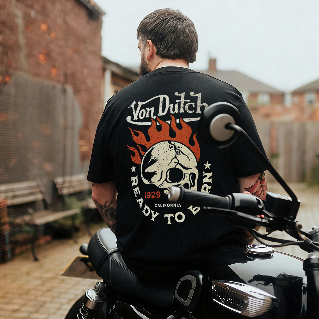 Von Dutch 1929 California Ready To Burn Skull Flame Print Printed Men's T-shirt