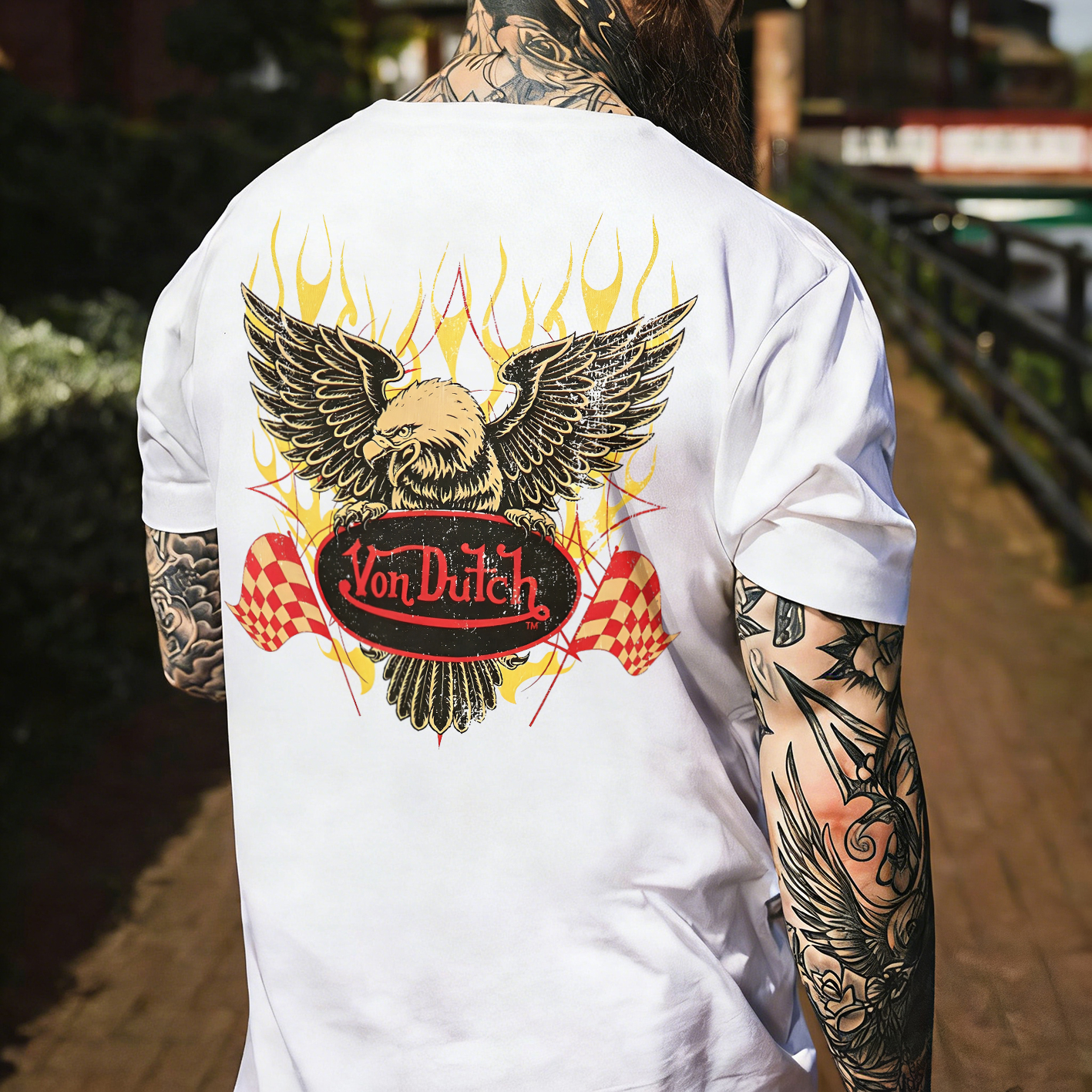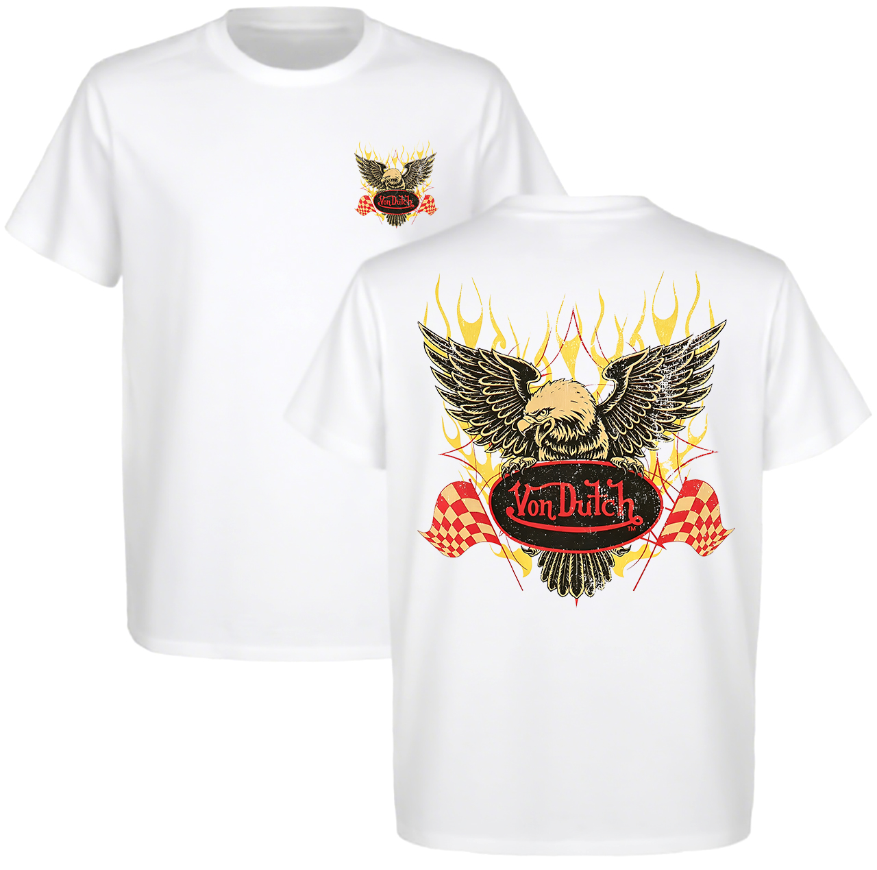 Von Dutch Eagle With Checkered Flags Printed Men's T-shirt