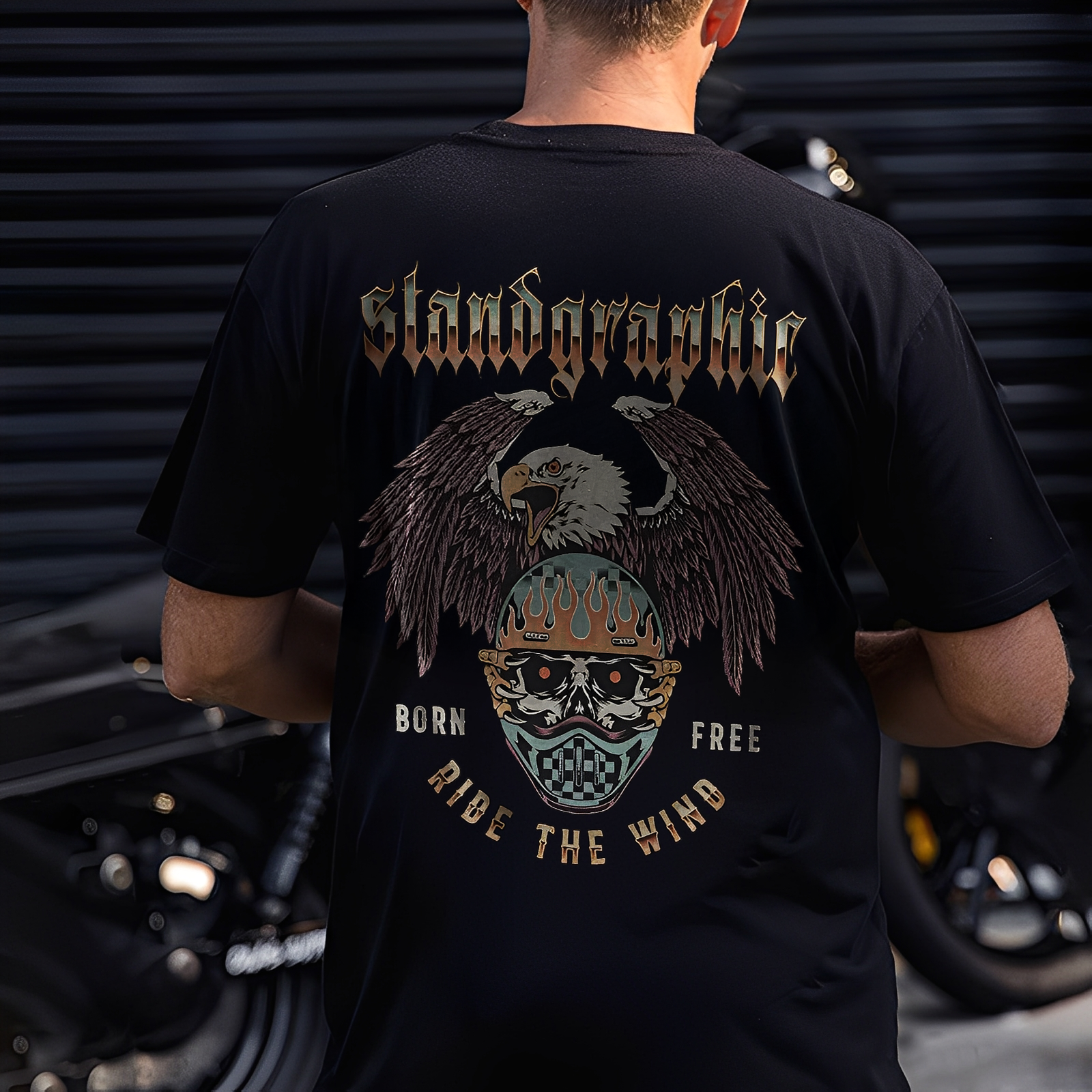 Stand Graphic Born Free Ride The Wind Printed Men's T-shirt