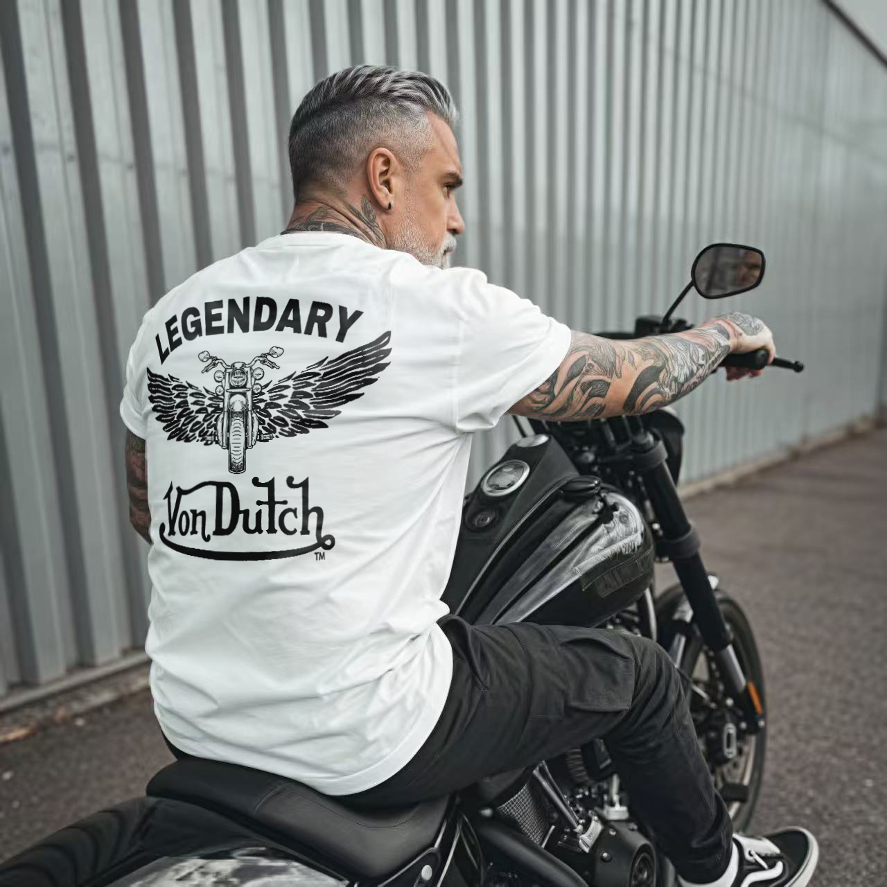 Von Dutch Legendary Winged Motorcycle Print Printed Men's T-shirt
