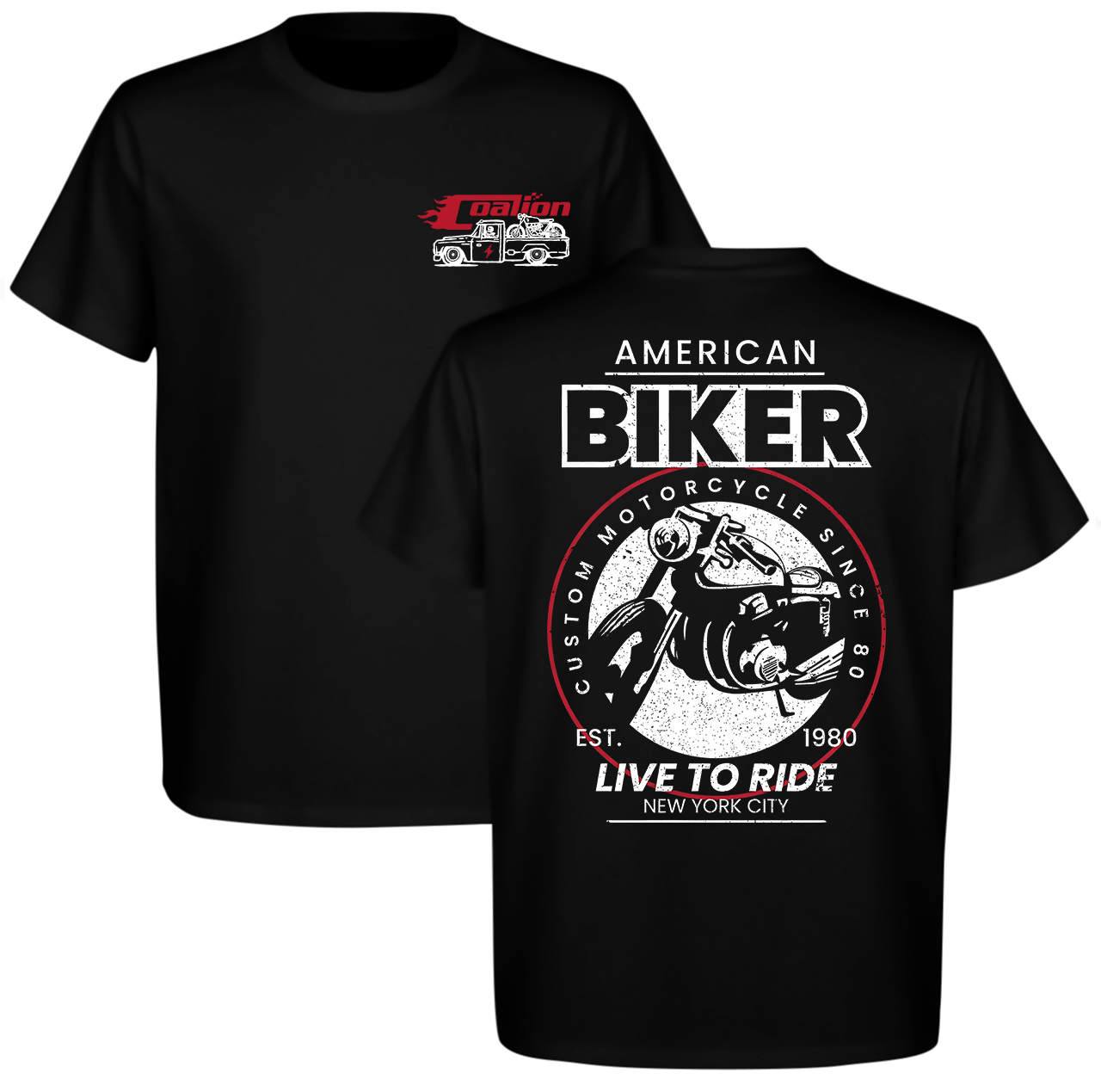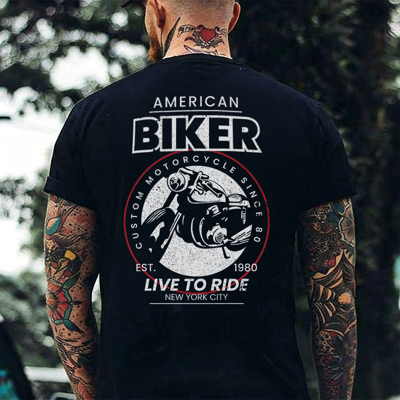 American Biker Custom Motorcycle Since 80 Est. 1980 Live To Ride New York City Printed Men's T-shirt