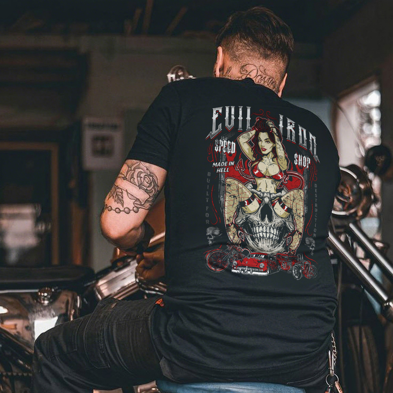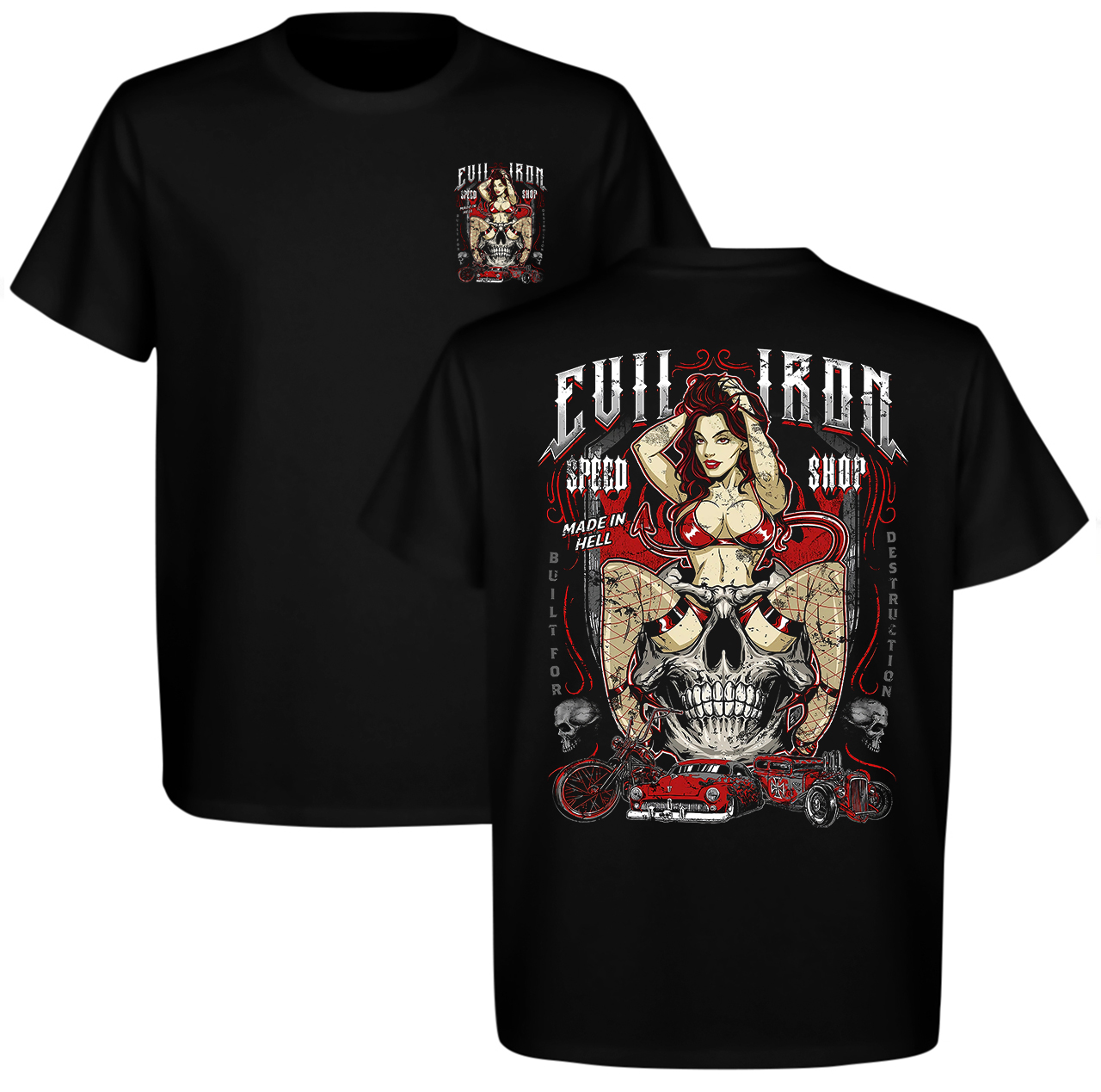 Evil Iron Speed Shop Made In Hell Builder Destruction Printed Men's T-shirt