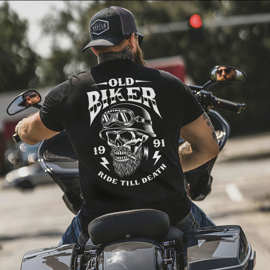 Old Biker 19 91 Ride Till Death Printed Men's T-shirt
