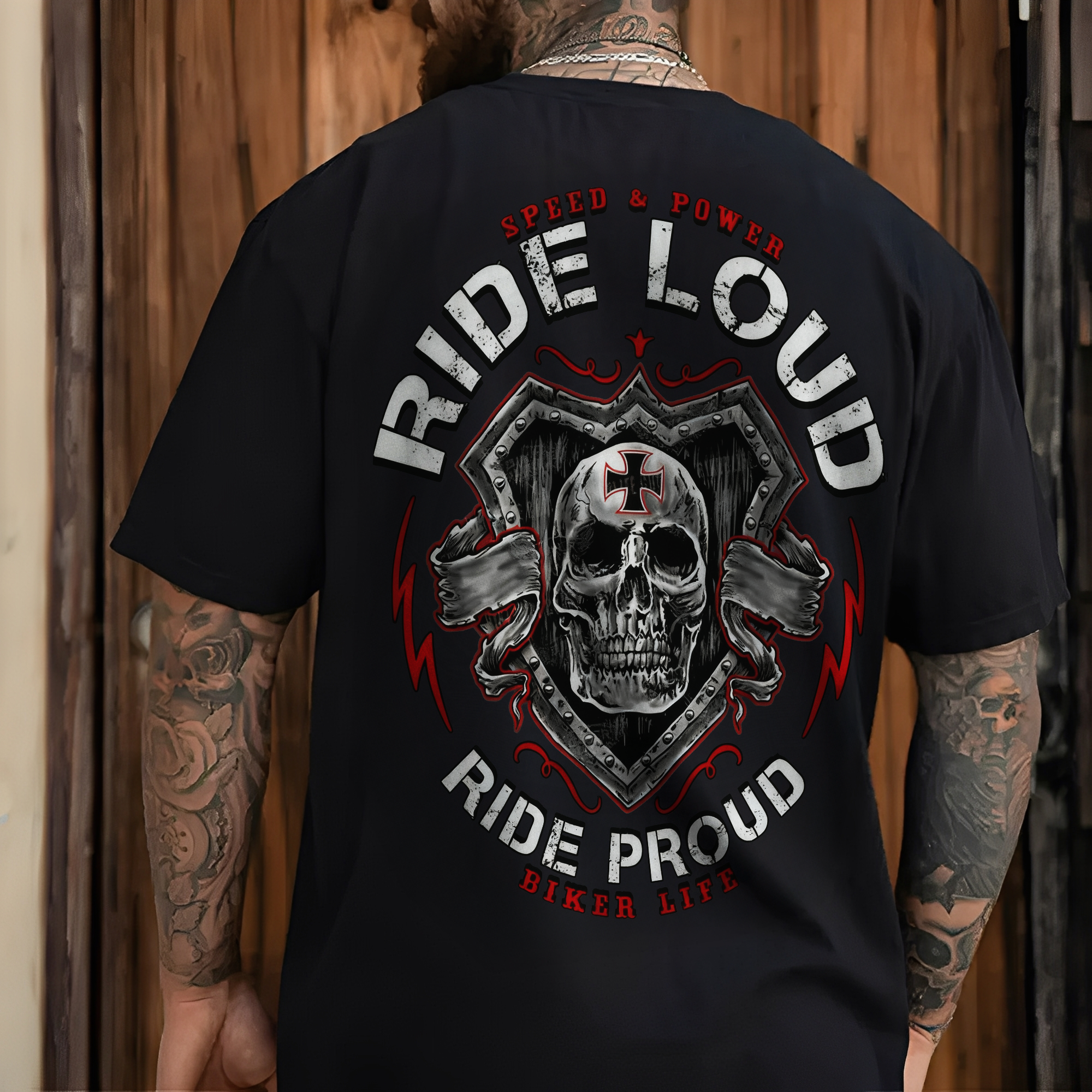Speed & Power Ride Loud Ride Proud Biker Life Printed Men's T-shirt