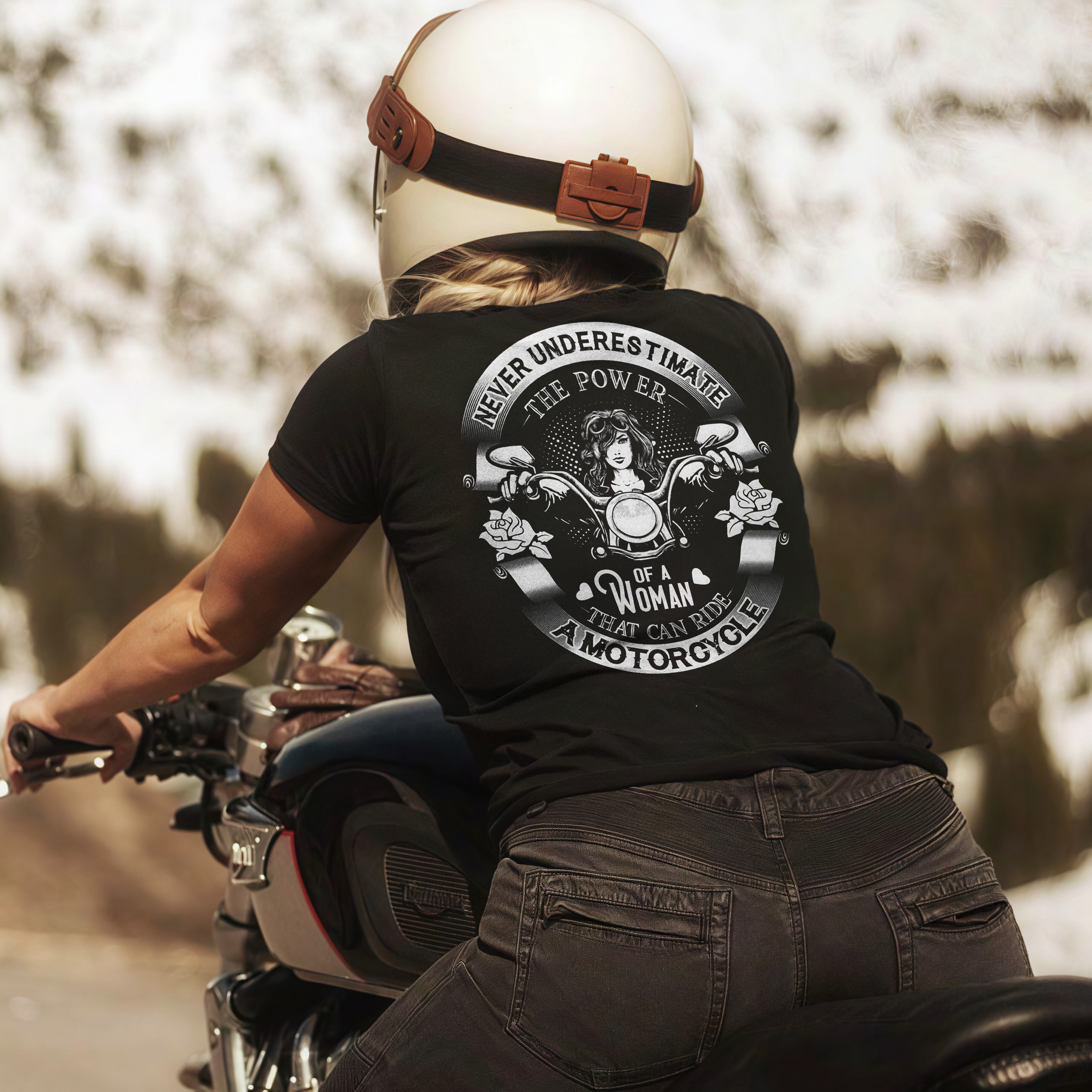 Never Underestimate The Power Of A Woman That Can Ride A Motorcycle Printed Women's T-shirt