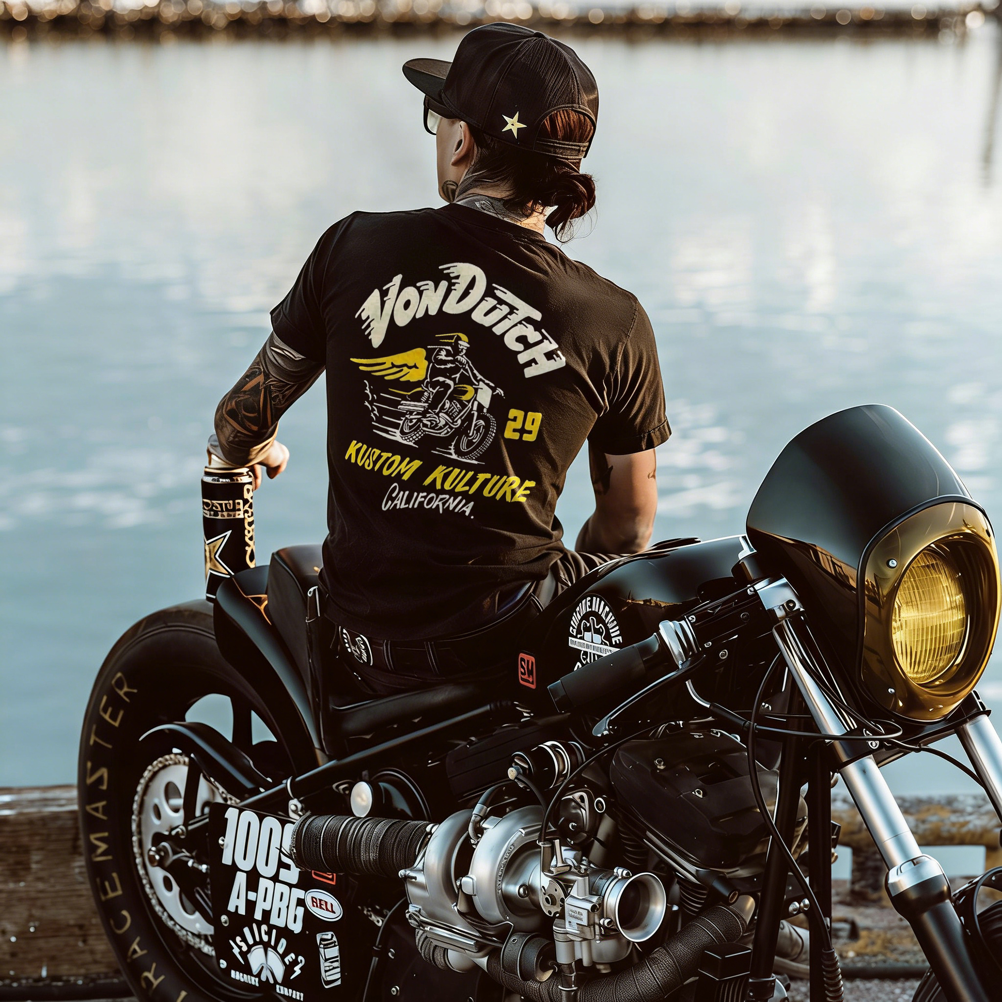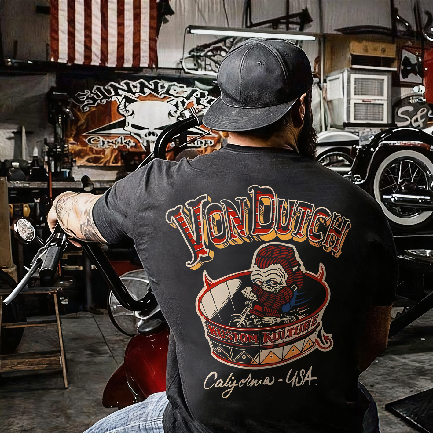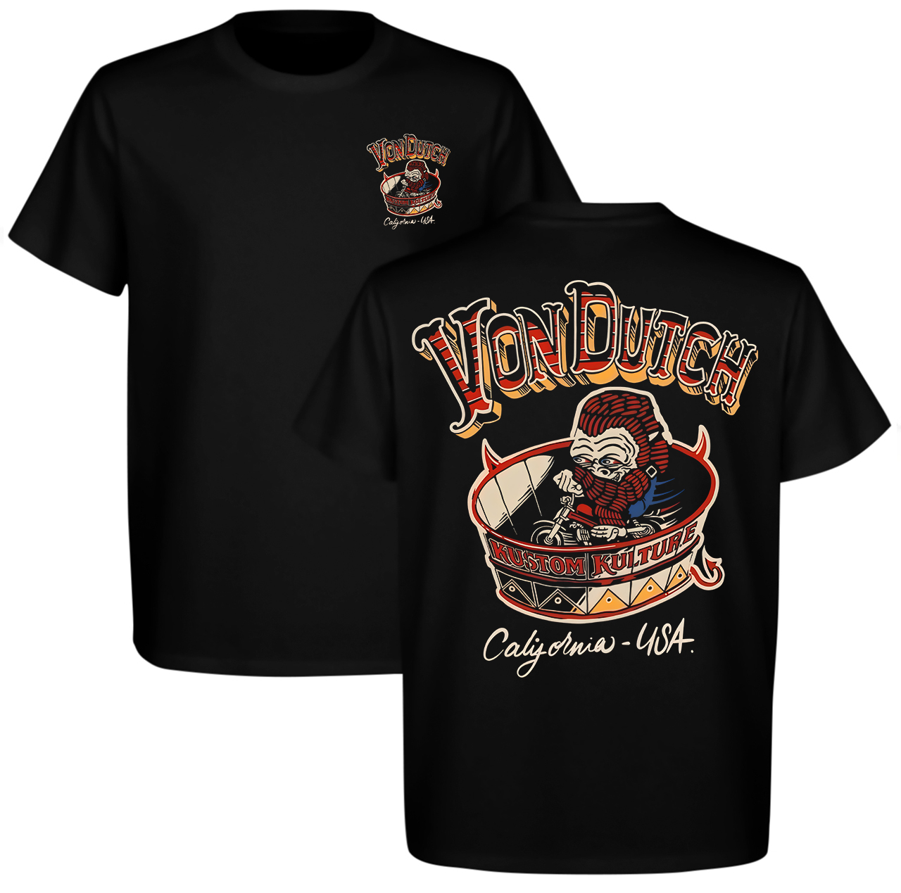 Von Dutch Kustom Kulture California Motorcycle Print Printed Men's T-shirt