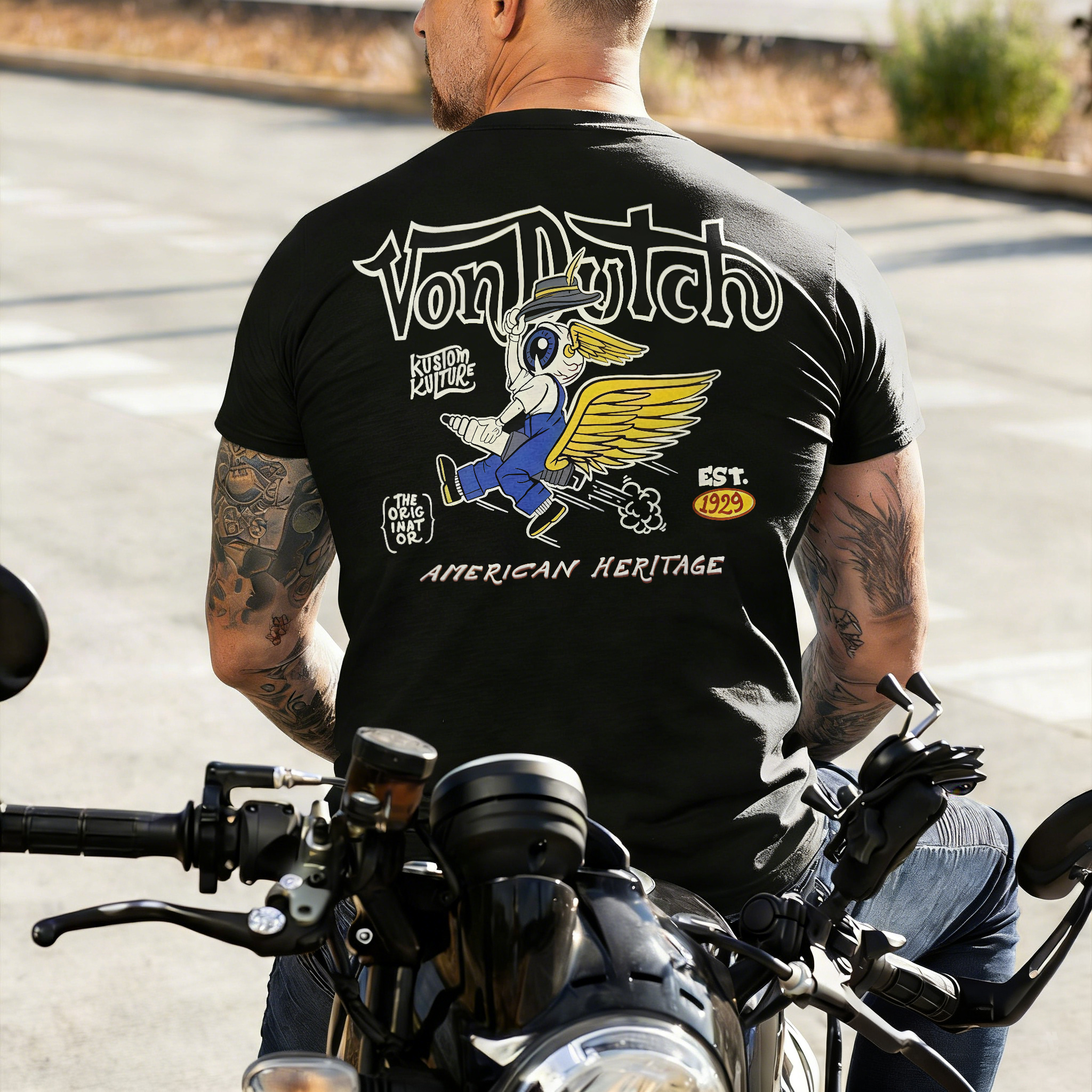 Von Dutch Kustom Kulture Winged Character American Heritage Print Printed Men's T-shirt