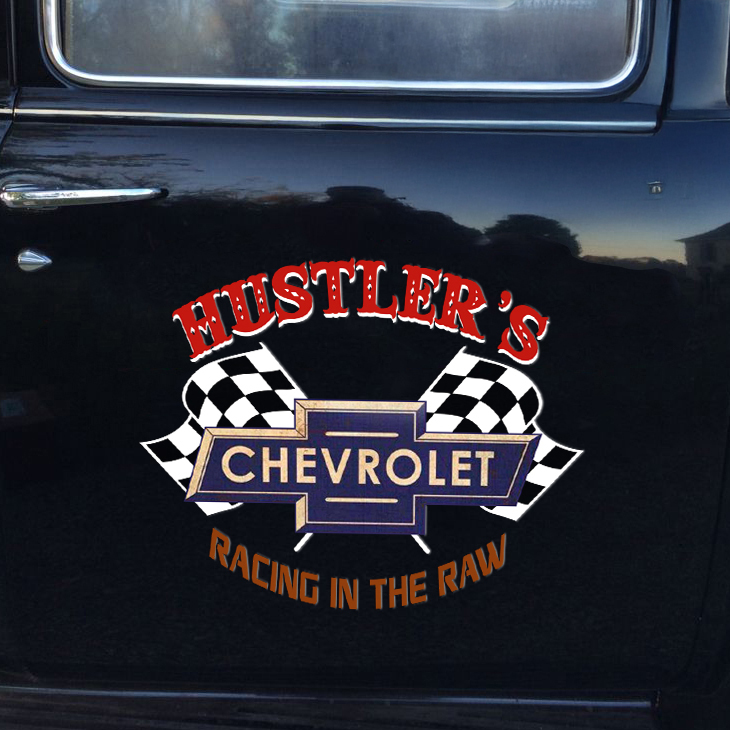 Hustler's Chevrolet Racing In The Raw Car Sticker