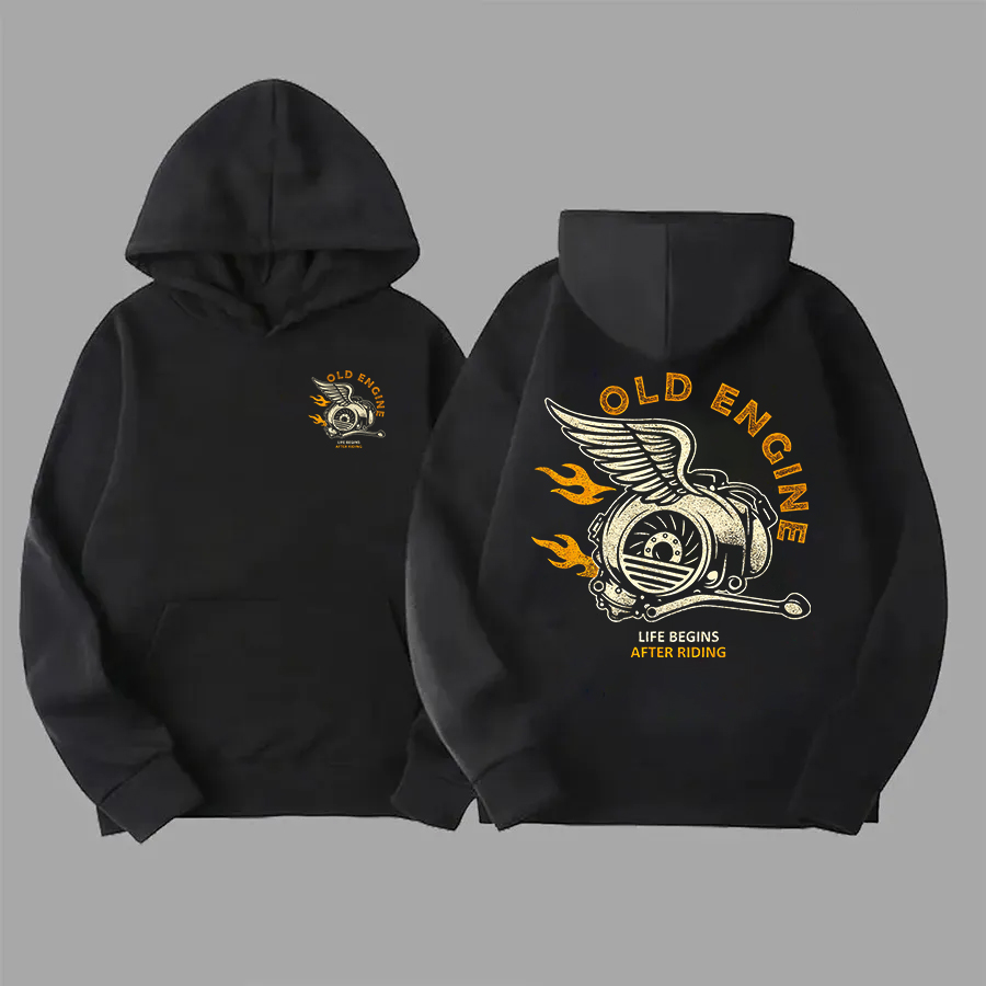 Old Engine Life Begins After Riding Printed Men's Hoodie