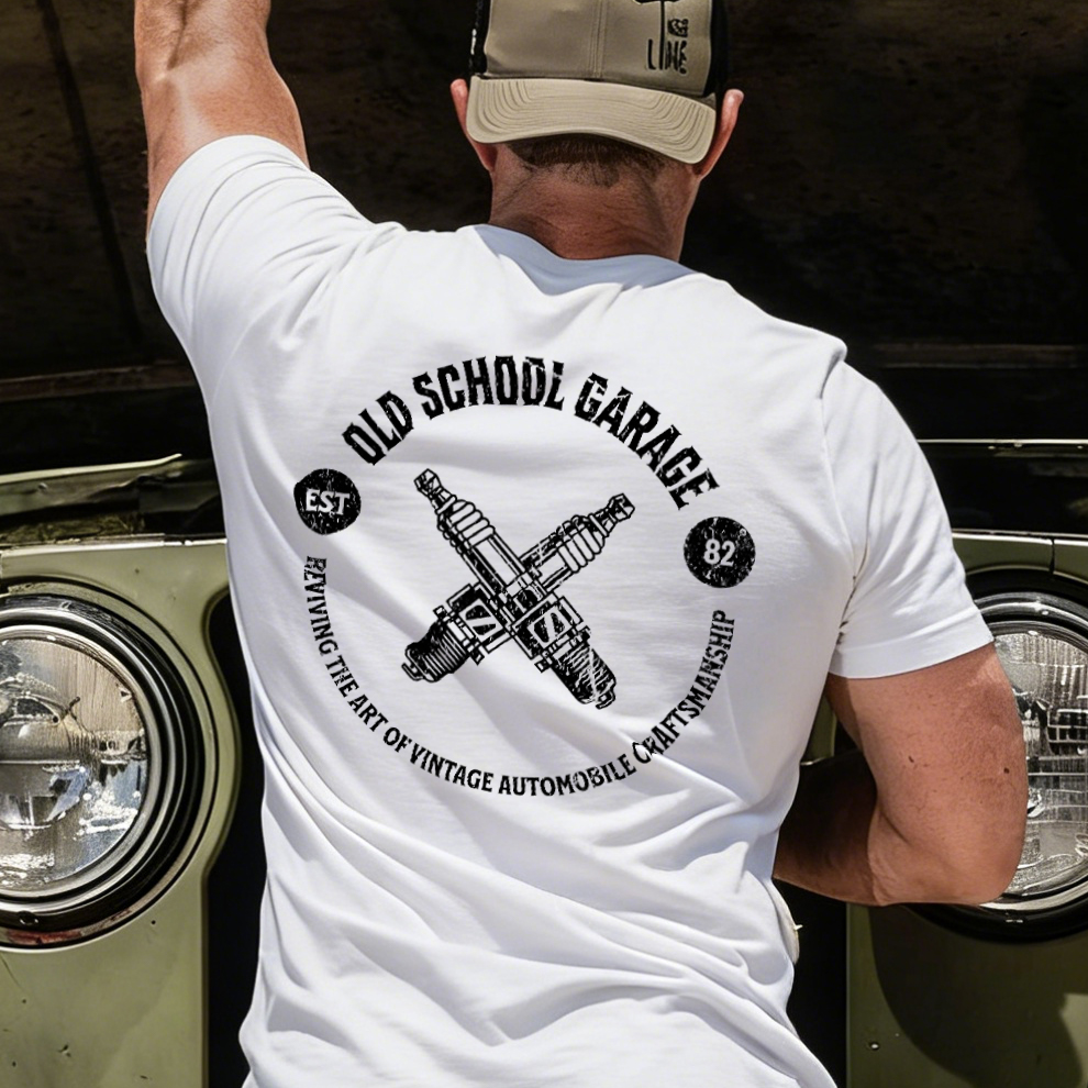 Old School Garage Est 82 Reviving The Art Of Vintage Automobile Craftsmanship Printed Men's T-shirt