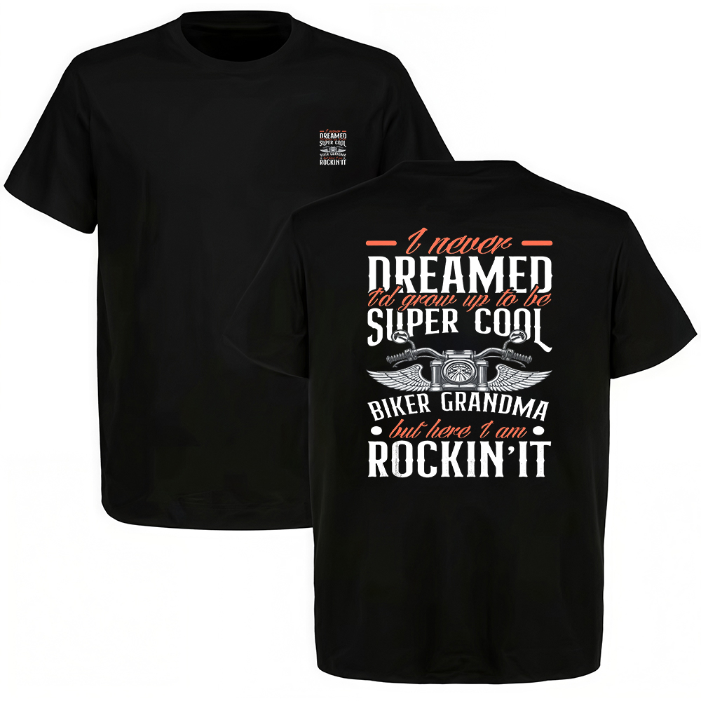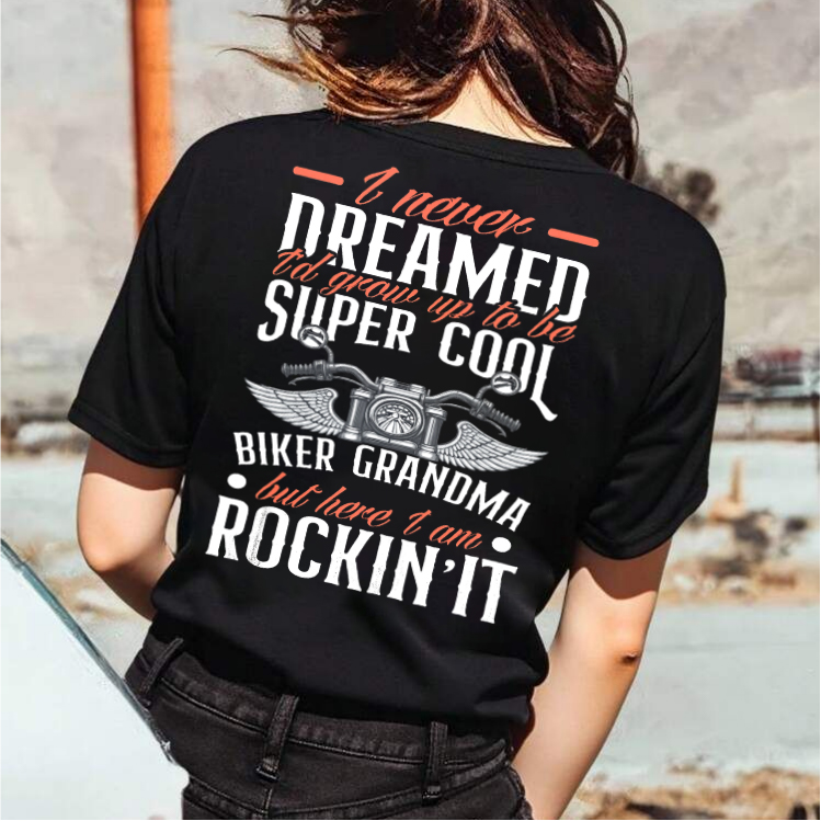 I Never Dreamed I'd Grow Up To Be Super Cool Biker Grandma But Here I Am Rockin' It Printed Women's T-shirt