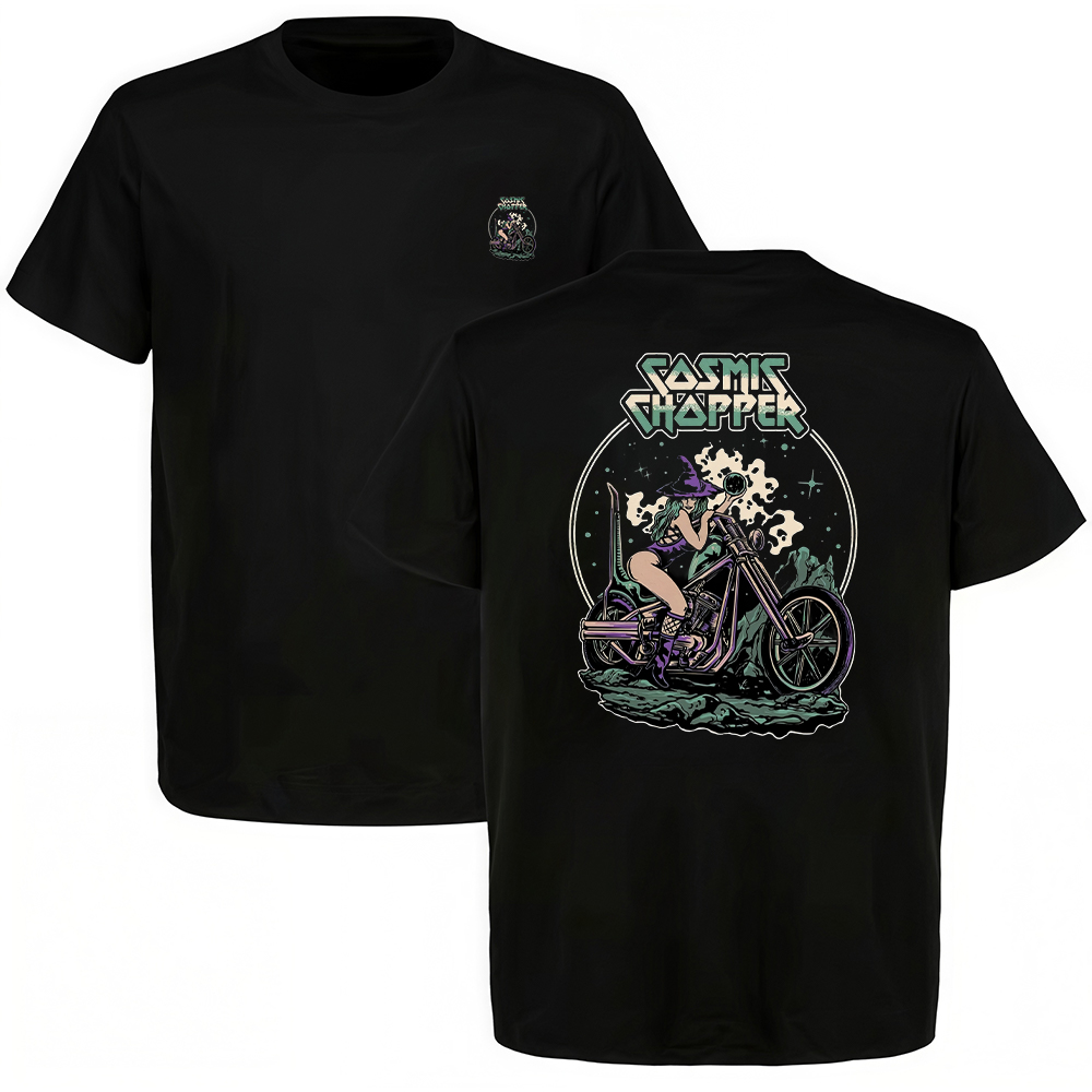 Snake Goddess With Chopper Motorcycle And Flames Illustration Printed Women's T-shirt