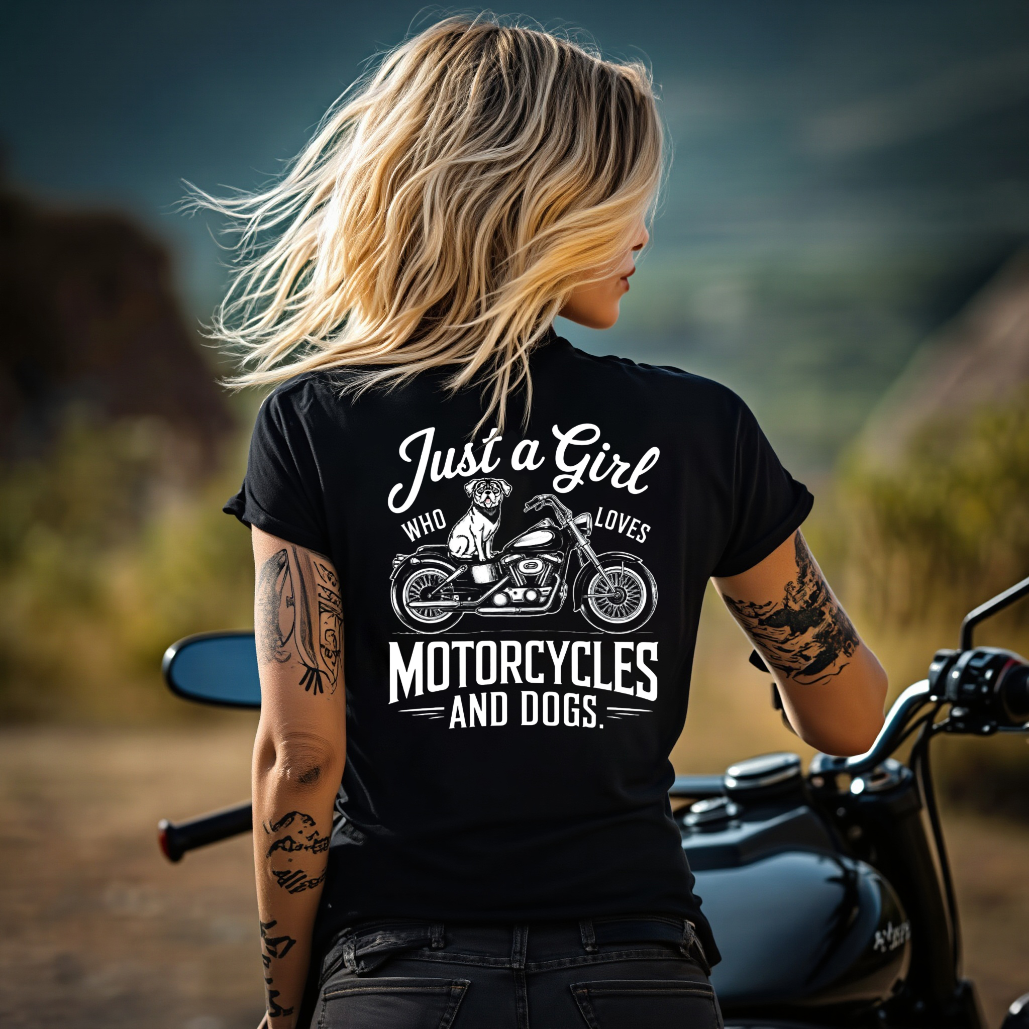 Just A Girl Who Loves Motorcycles And Dogs Bulldog On Bike Illustration Printed Women's T-shirt