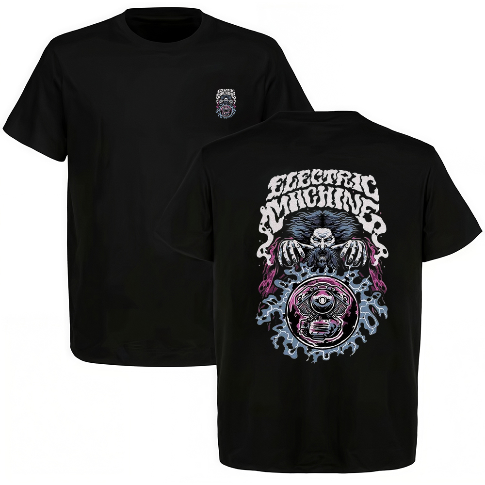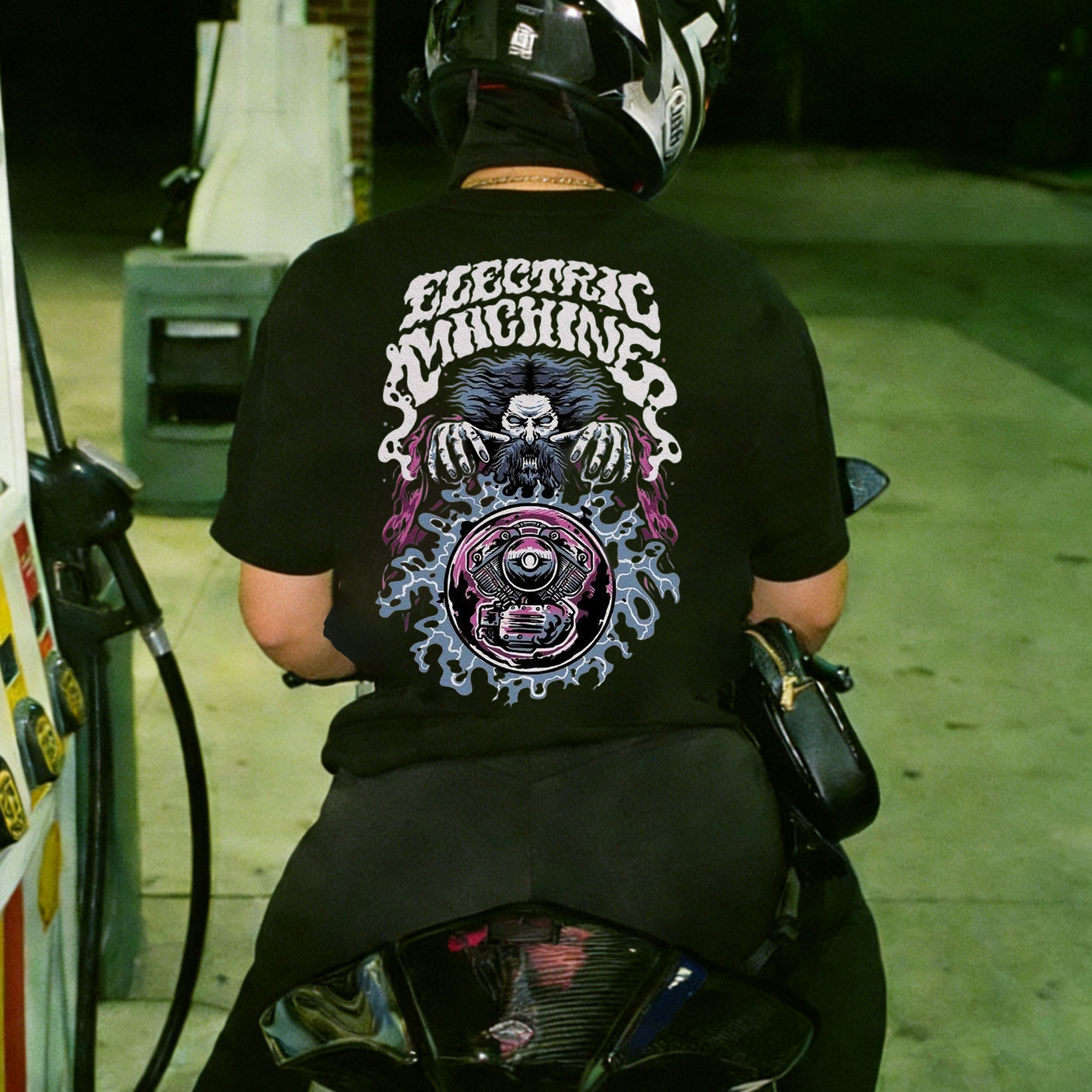 Electric Machine Bearded Man With Motorcycle Engine And Flames Printed Women's T-shirt