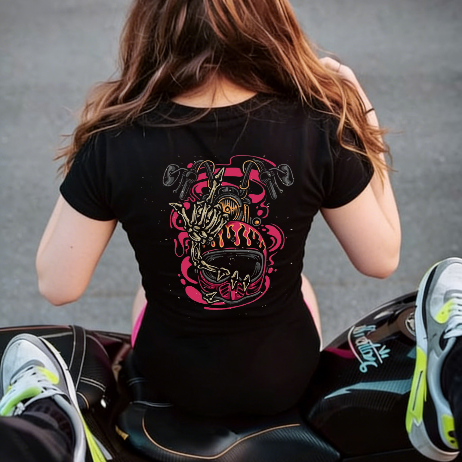 Skeleton Hand With Helmet Printed Women's T-shirt