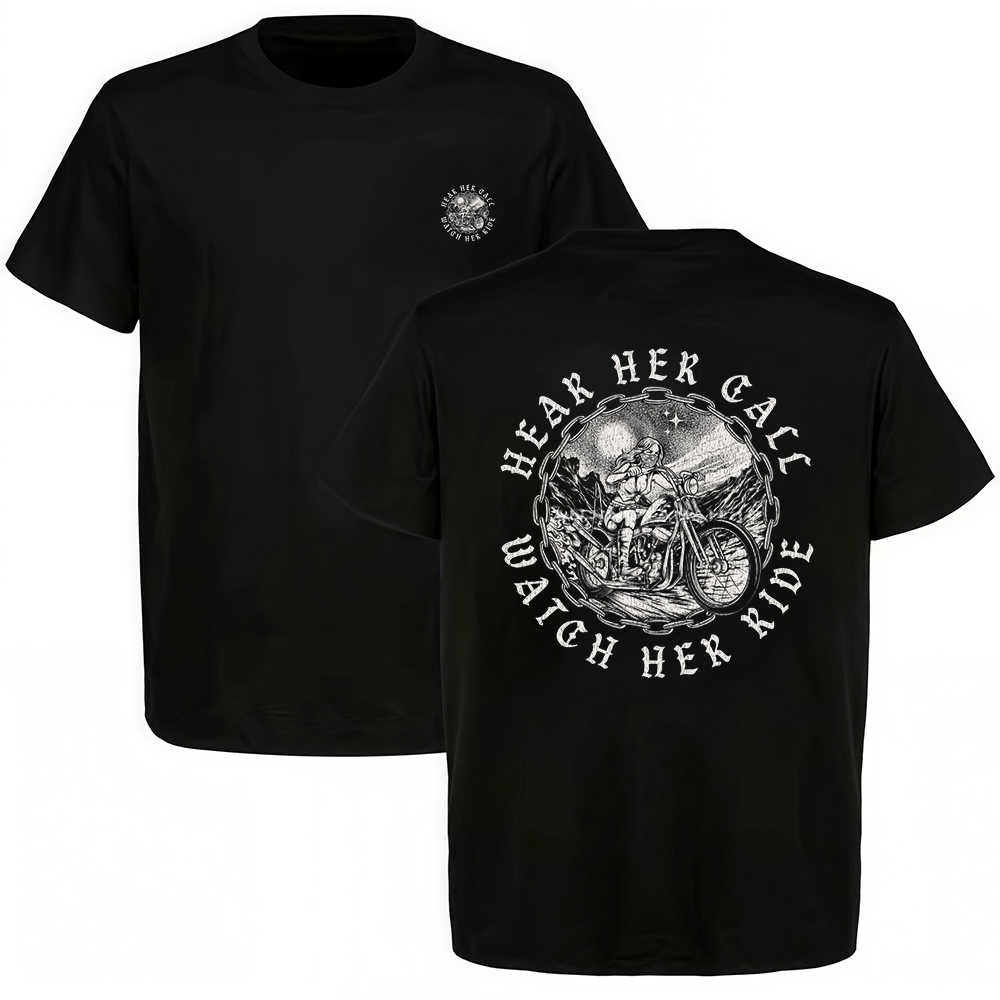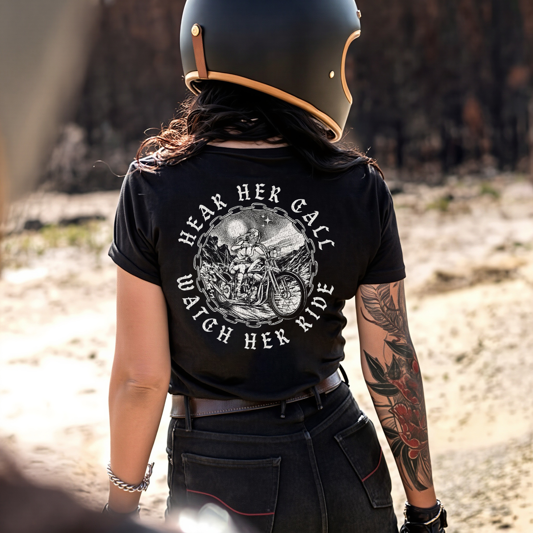 Hear Her Call Watch Her Ride Female Biker On Motorcycle Art Printed Women's T-shirt