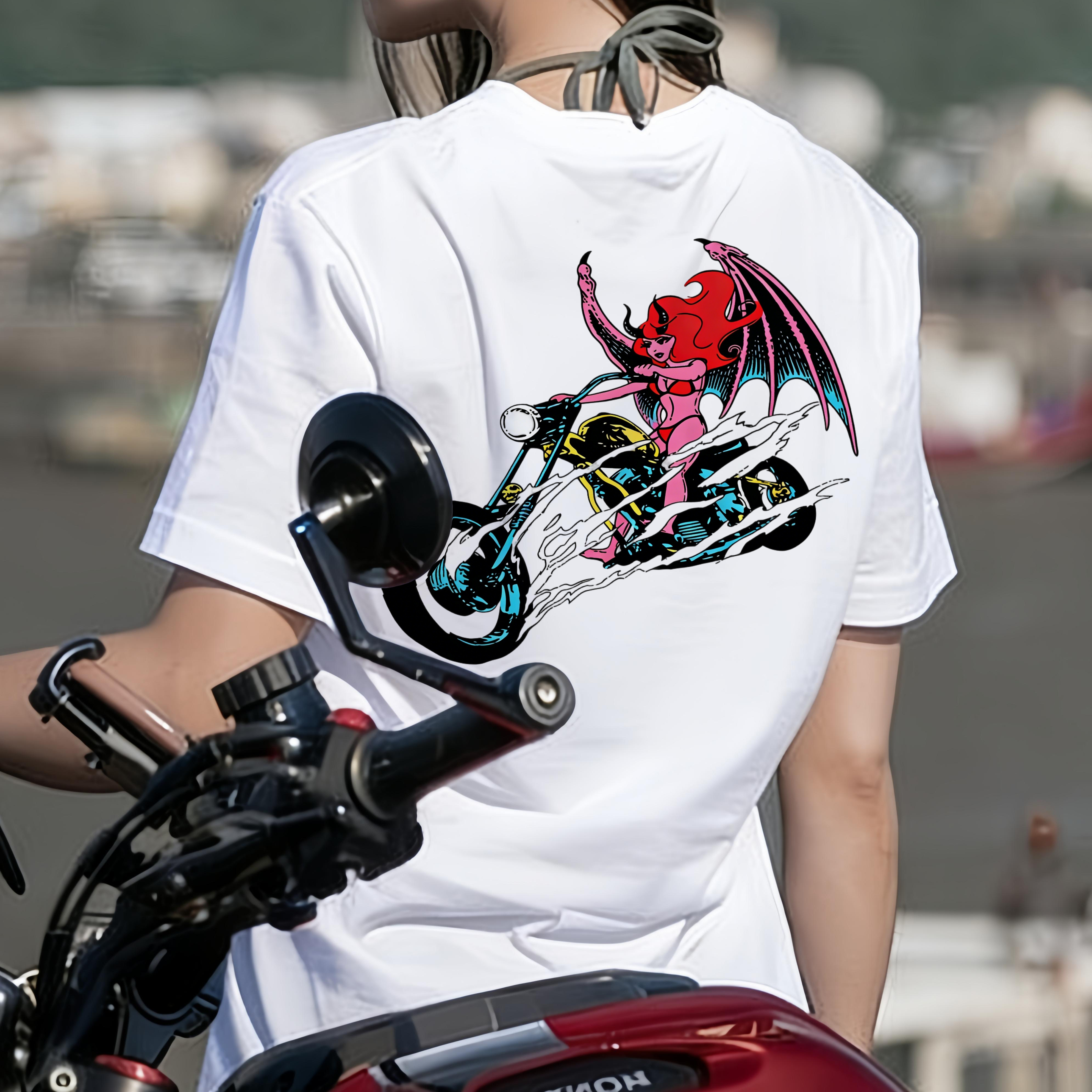 Demoness Riding Motorcycle Printed Women's T-shirt