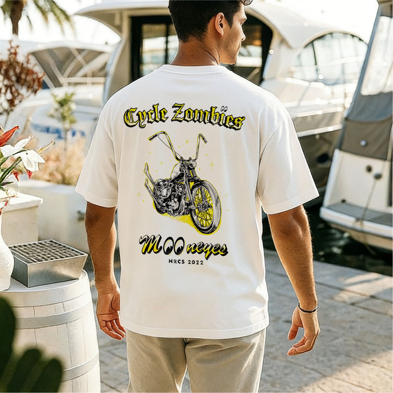 Cycle Zombies X Mooneyes Hrcs 2022 Chopper Bike Printed Men's T-shirt
