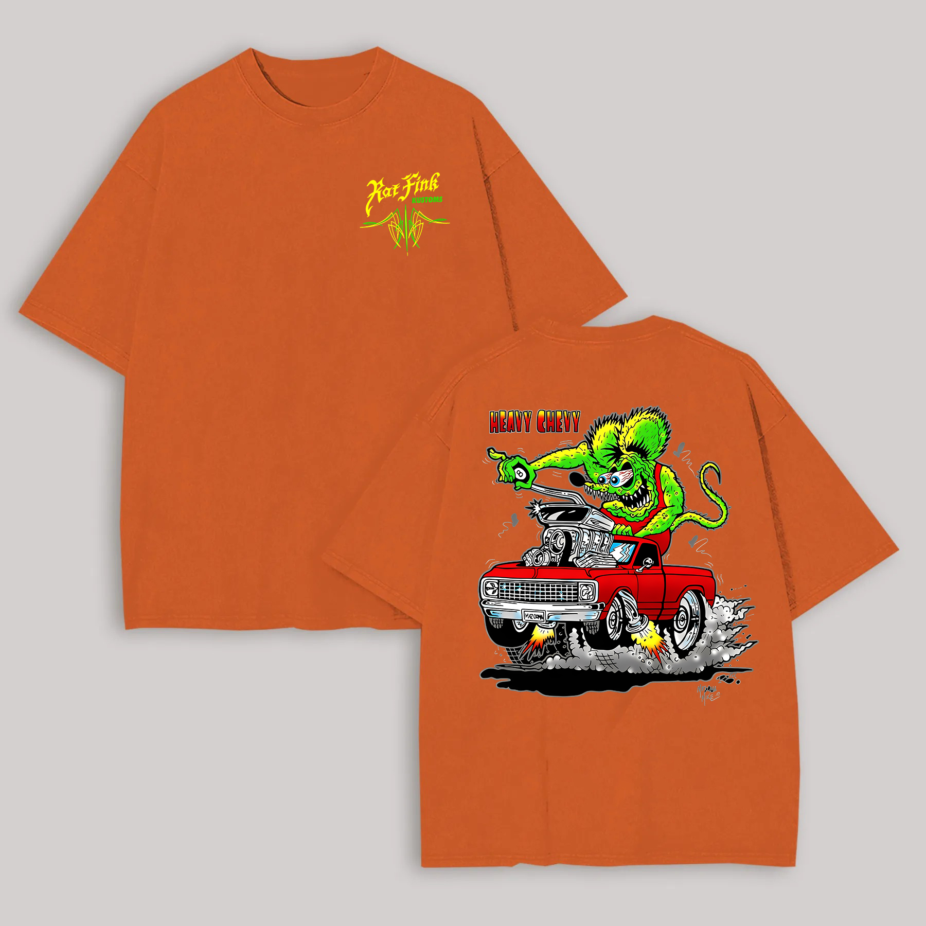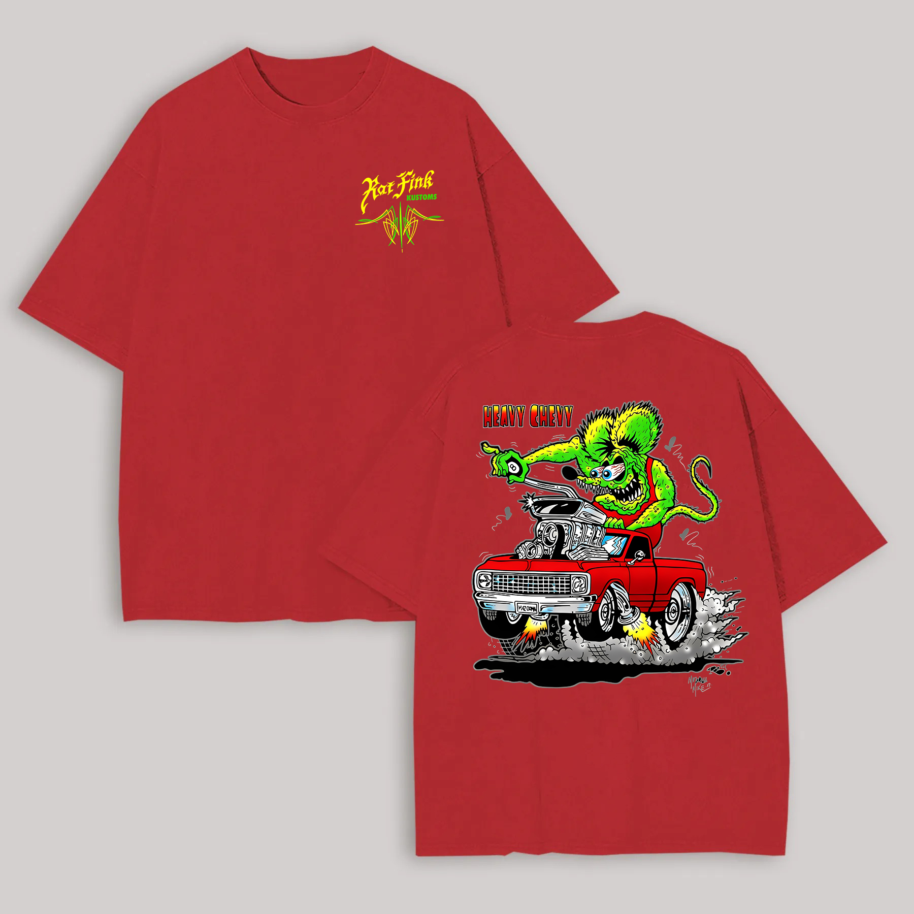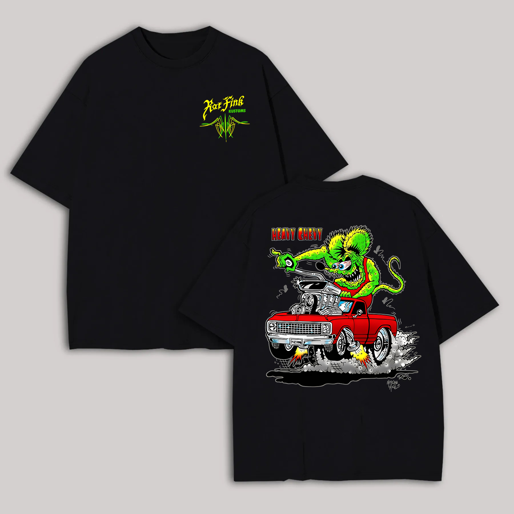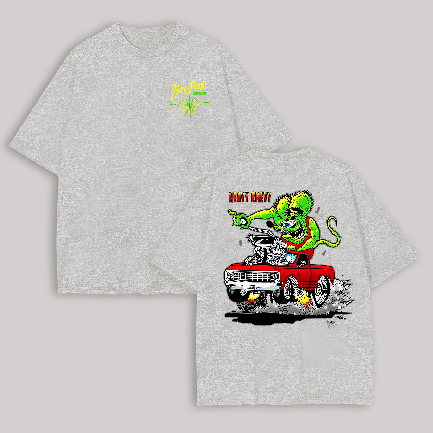 Hot Fink Kustoms Heavy Chevy Car & Monster Printed Men's T-shirt